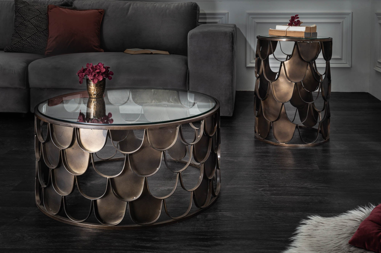 Masă laterală ABSTRACT 55cm solzi de pește,sticlă securizată
