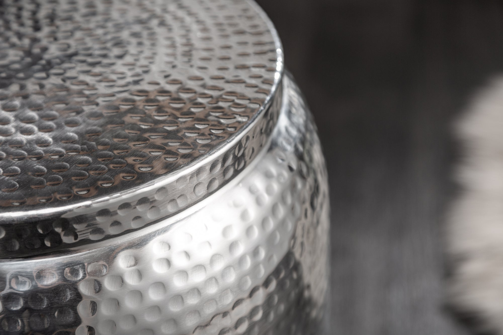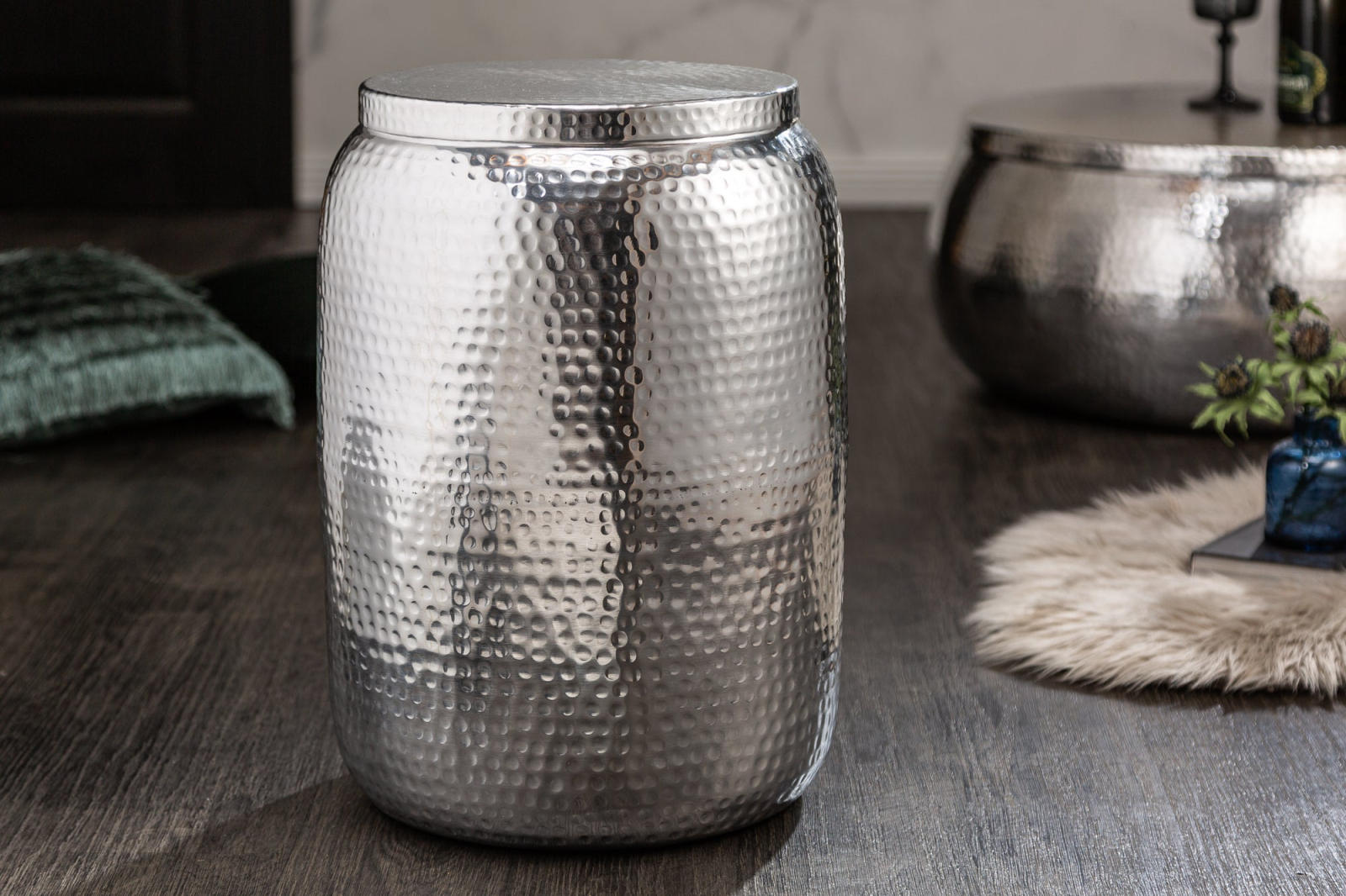 Masă laterală ORGANIC ORIENT 50cm cu efect de lovitură de ciocan argintie