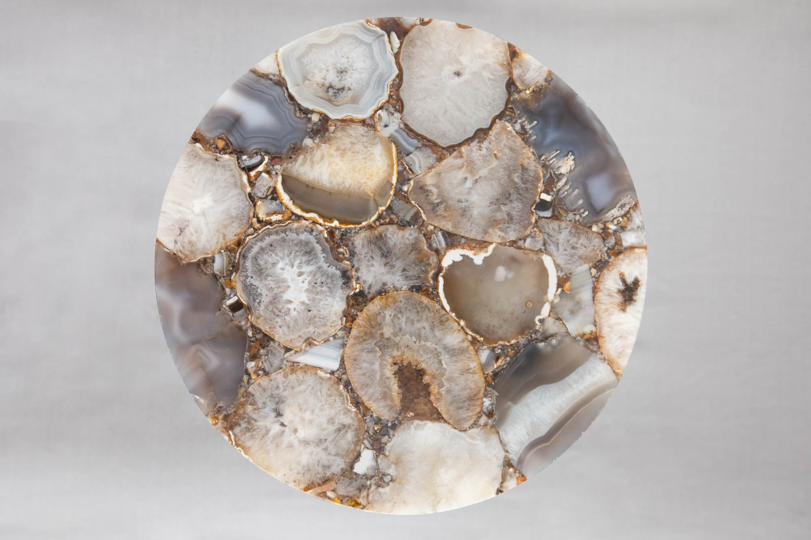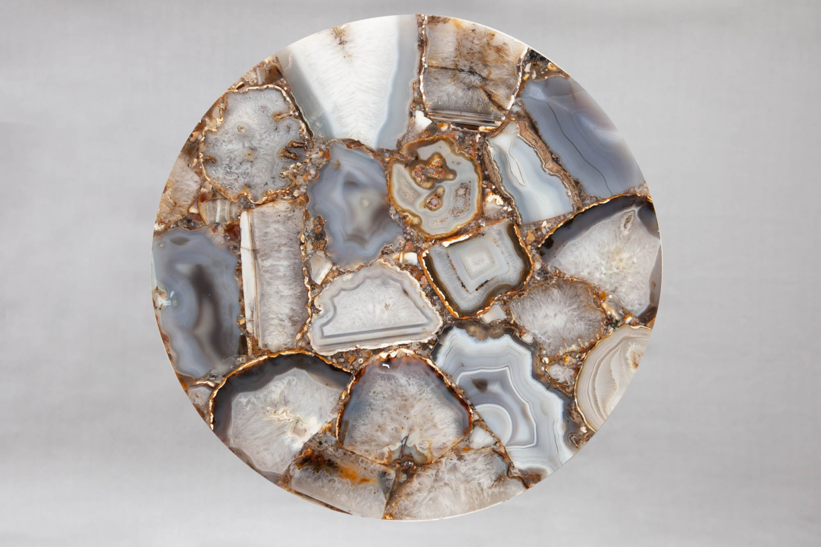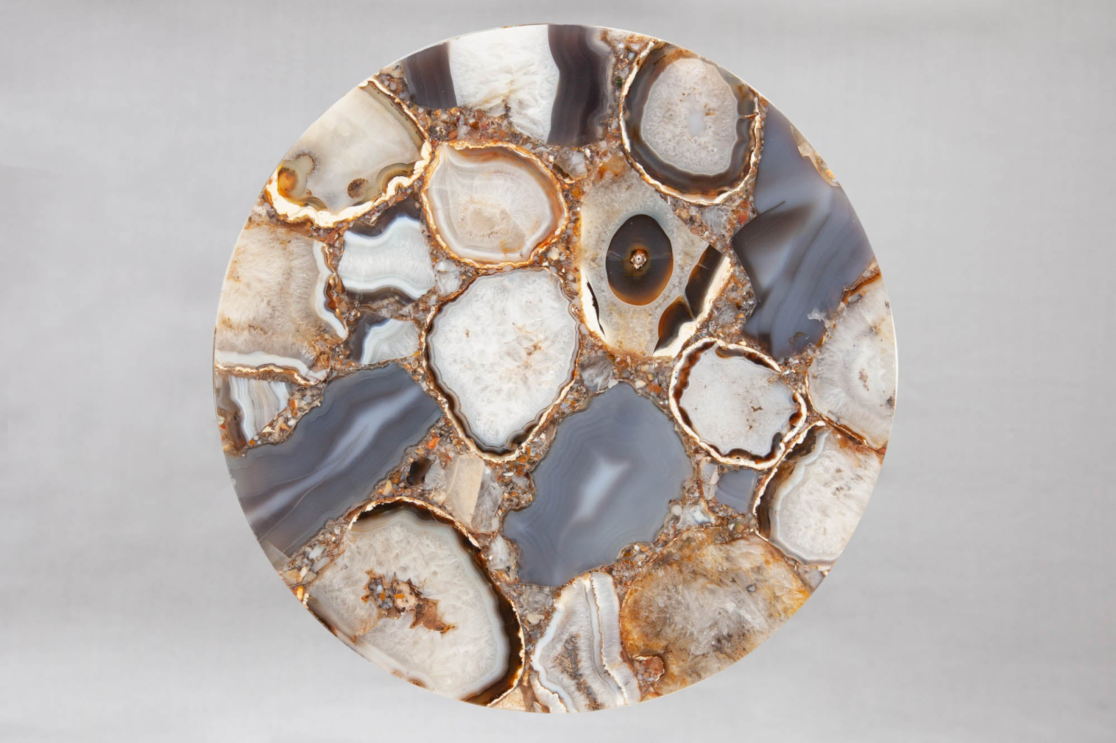 Masă laterală NOBLE 35cm,piatra de agat albastru alb cu blat detașabil