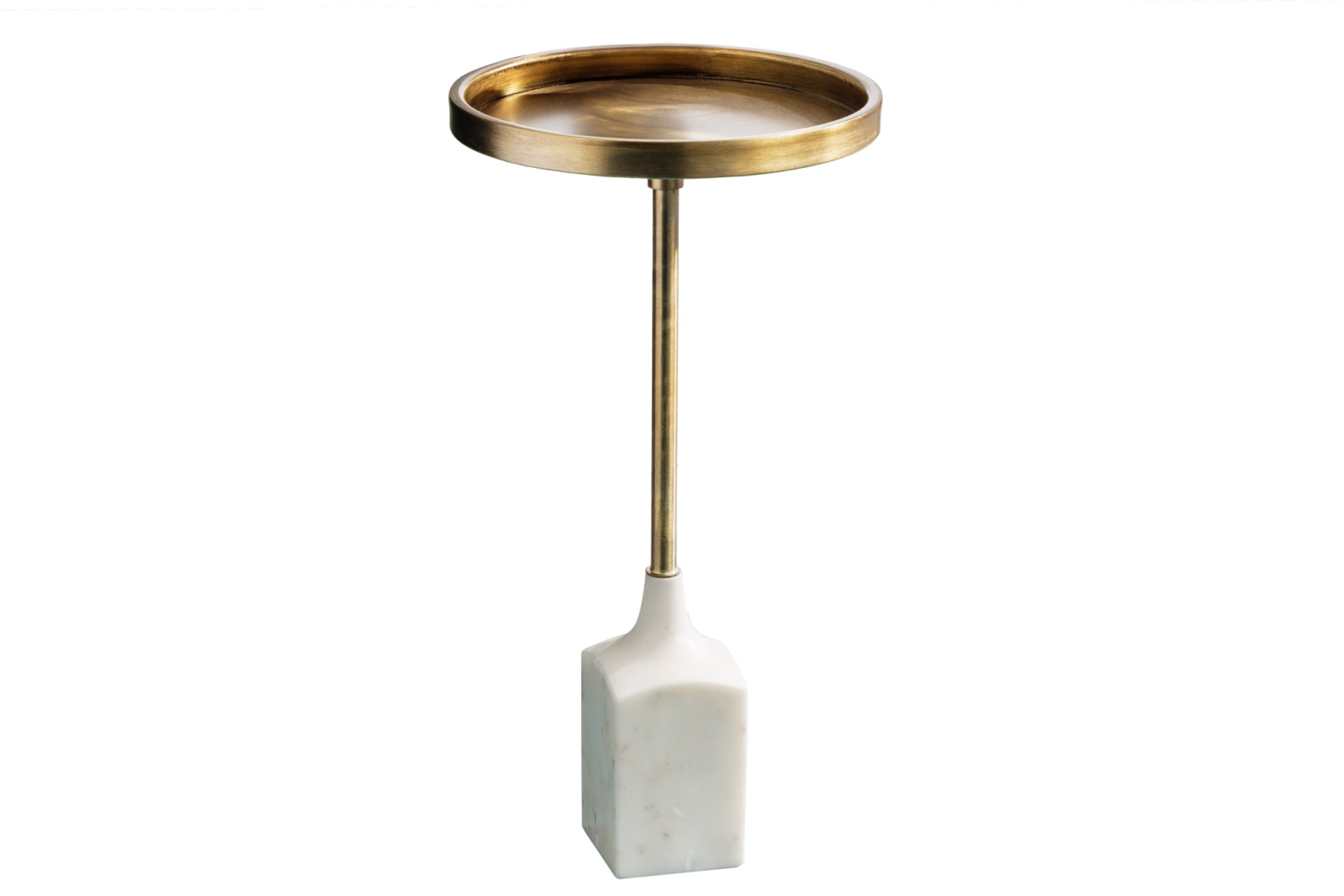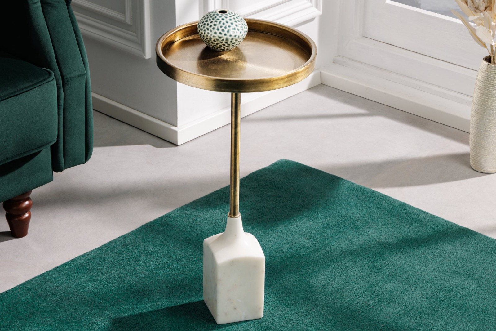 Masă laterală TRAYFUL 55cm auriu antic cu suport din marmură