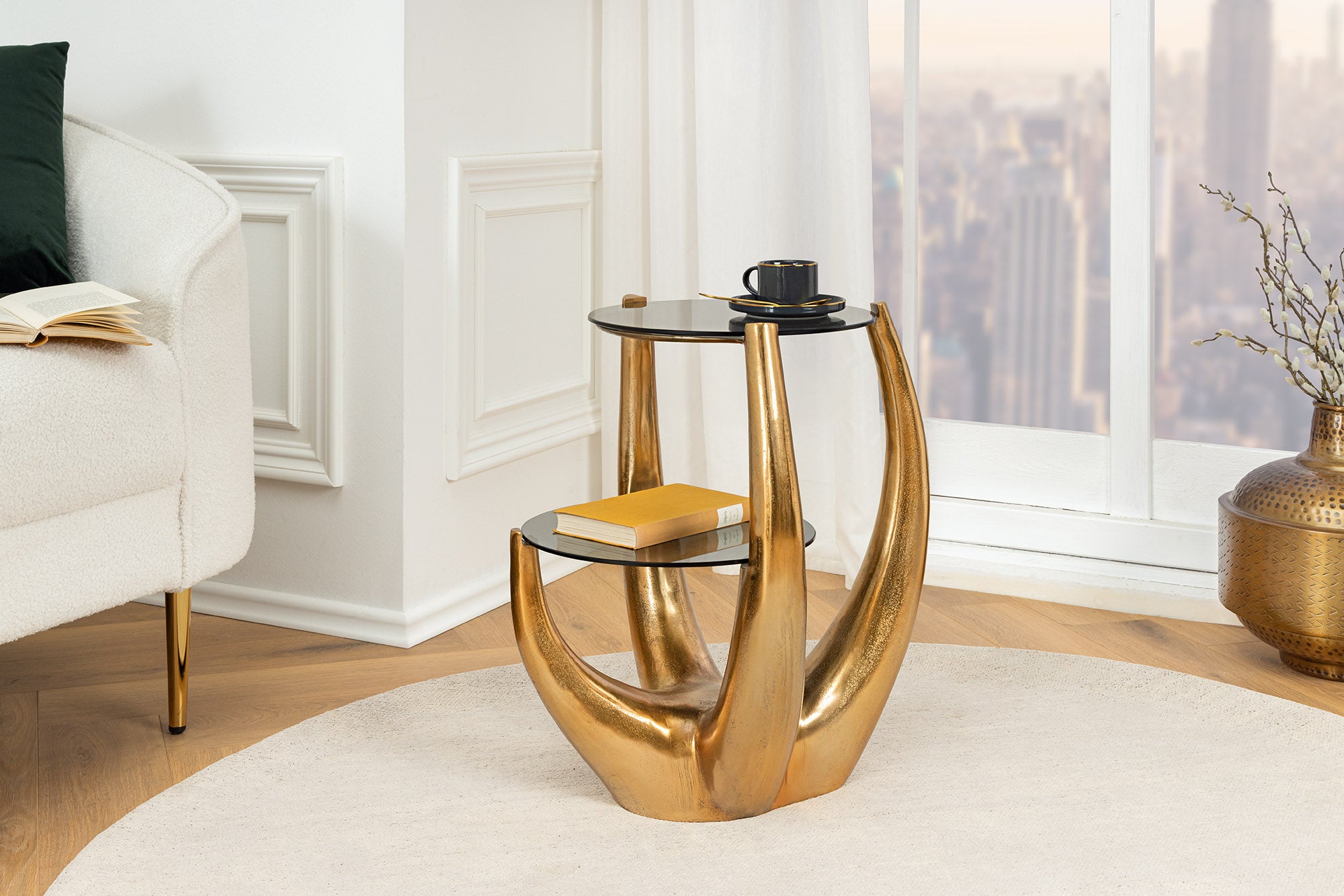 Masă laterală LEVELS 50cm ,cadru auriu , sticlă securizată , blat negru