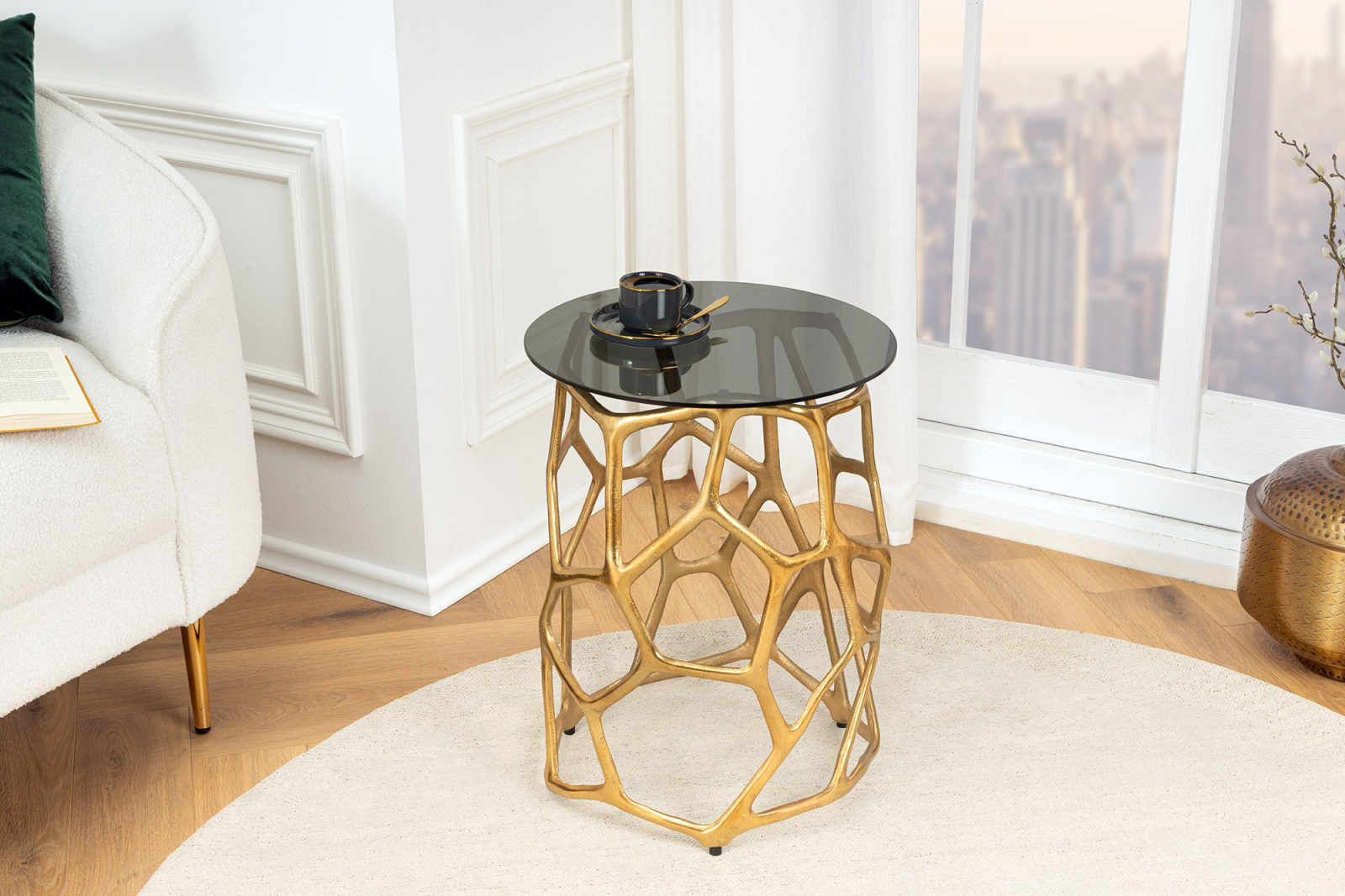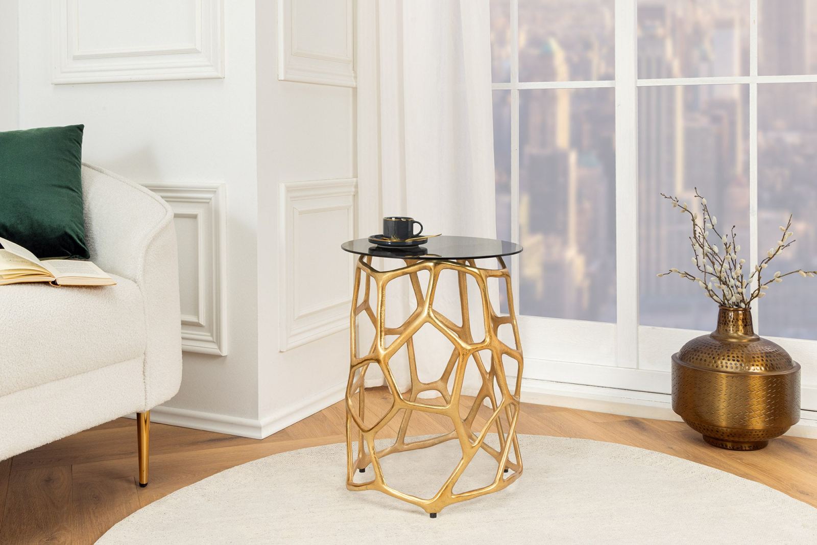 Masă laterală LIQUID GEOMETRY 50cm,sticlă securizată neagră,cadru auriu