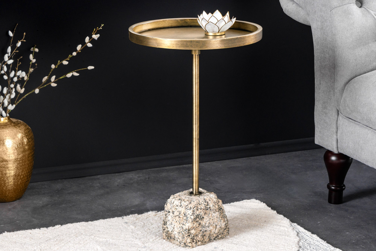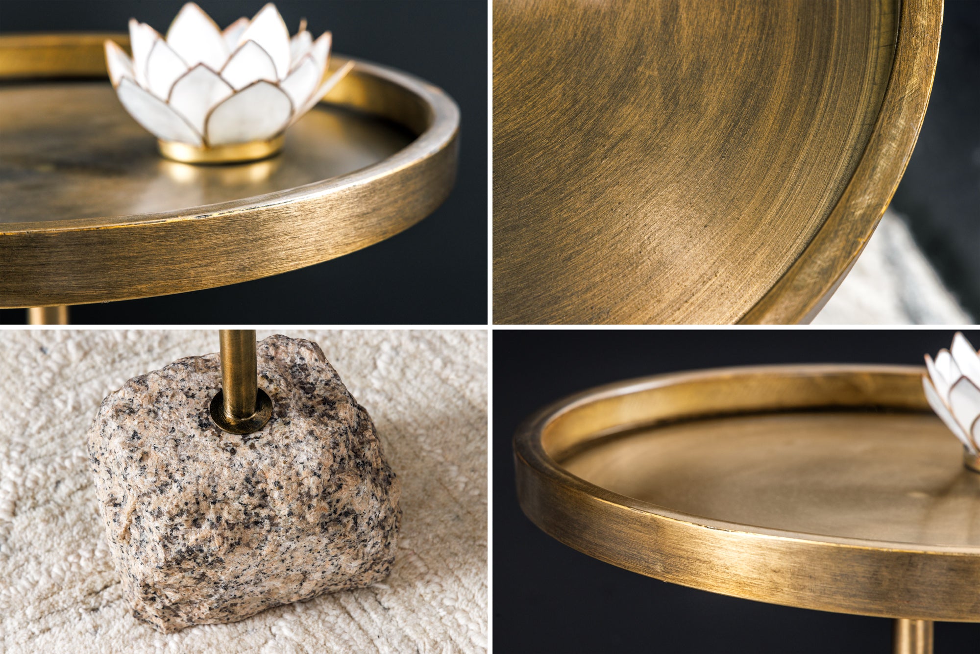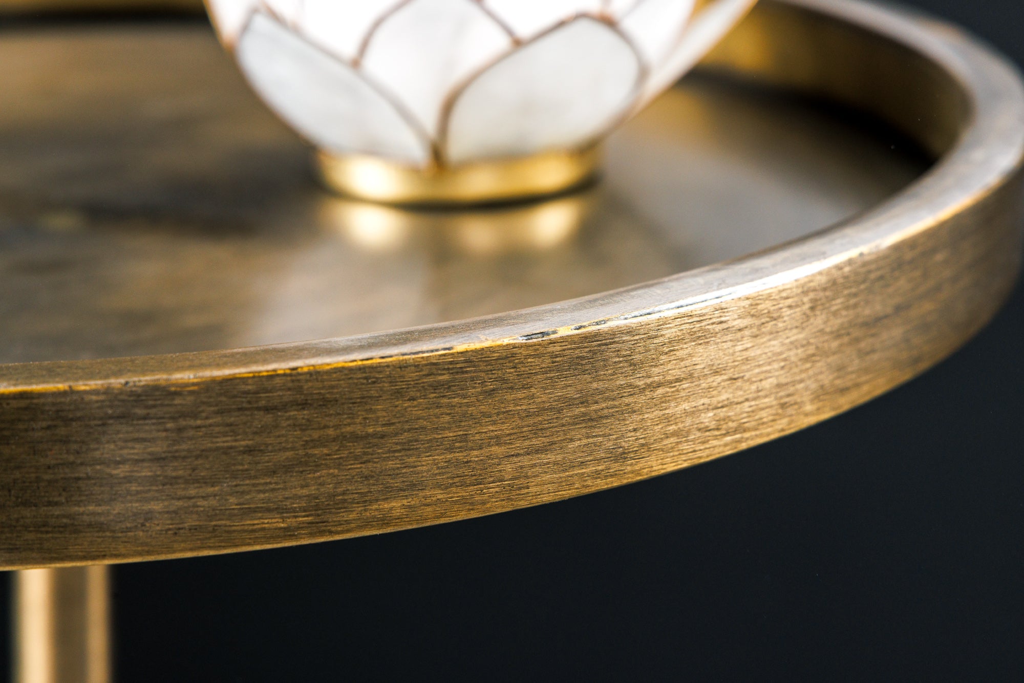 Masuta laterala TRAYFUL 60cm,baza de marmura si blat culoare alama antica din fier
