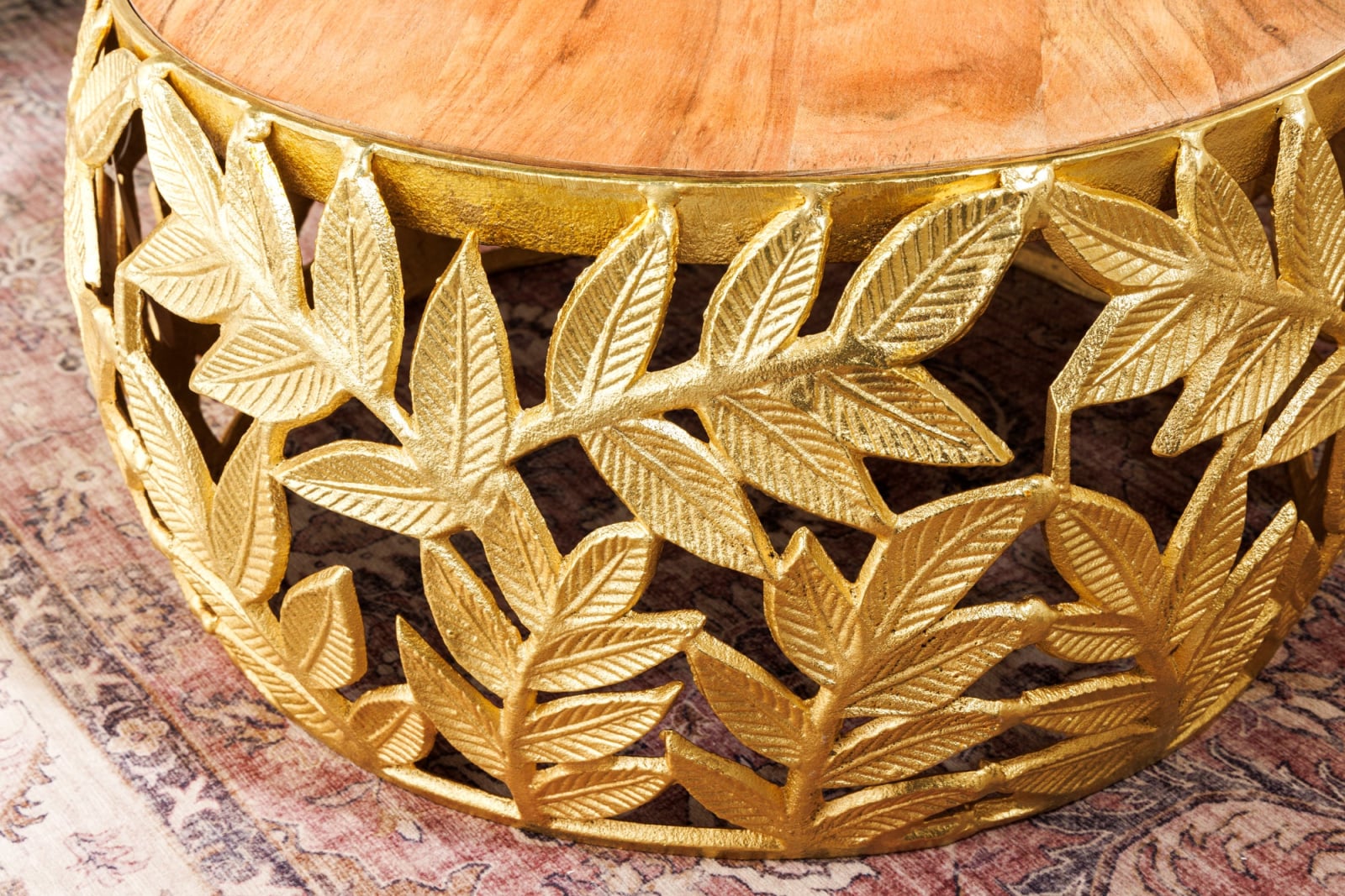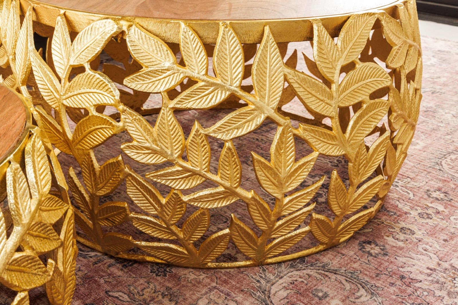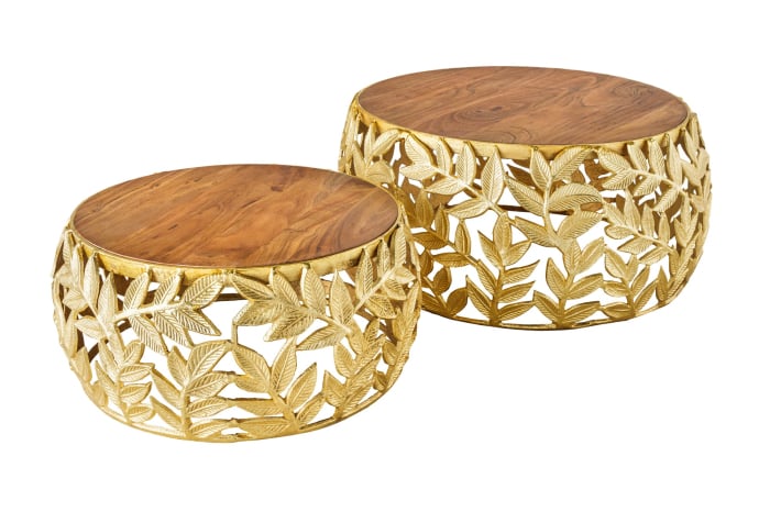 Set 2 masute de cafea ABSTRACT LEAF cu blat din lemn de salcam, 54-68 cm