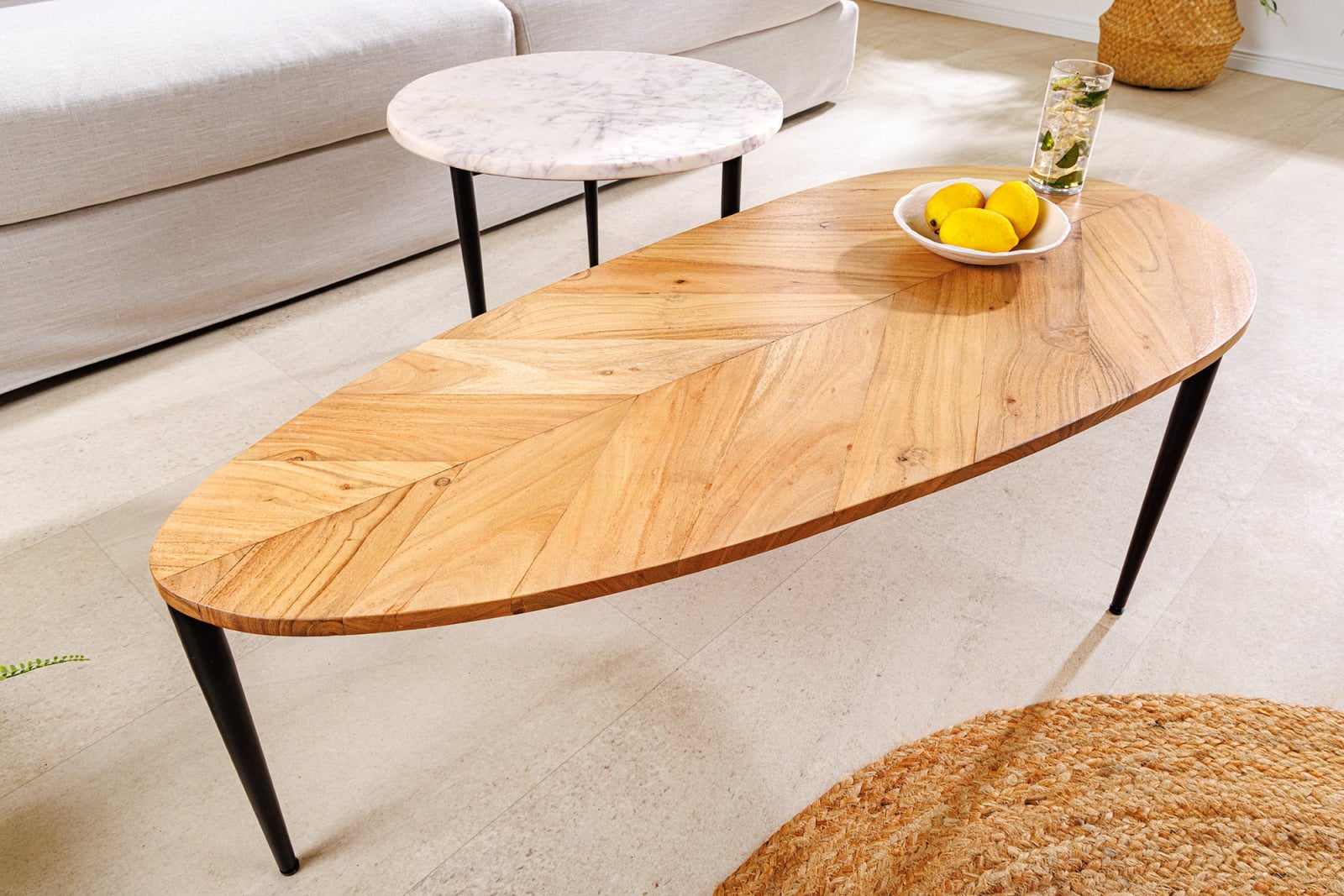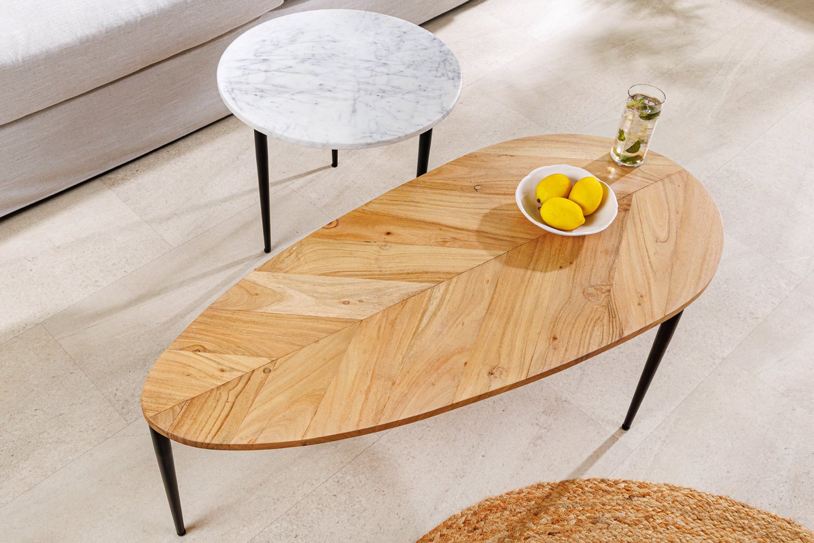 Set 2 masute de cafea ADLON din lemn natural de salcam si marmura