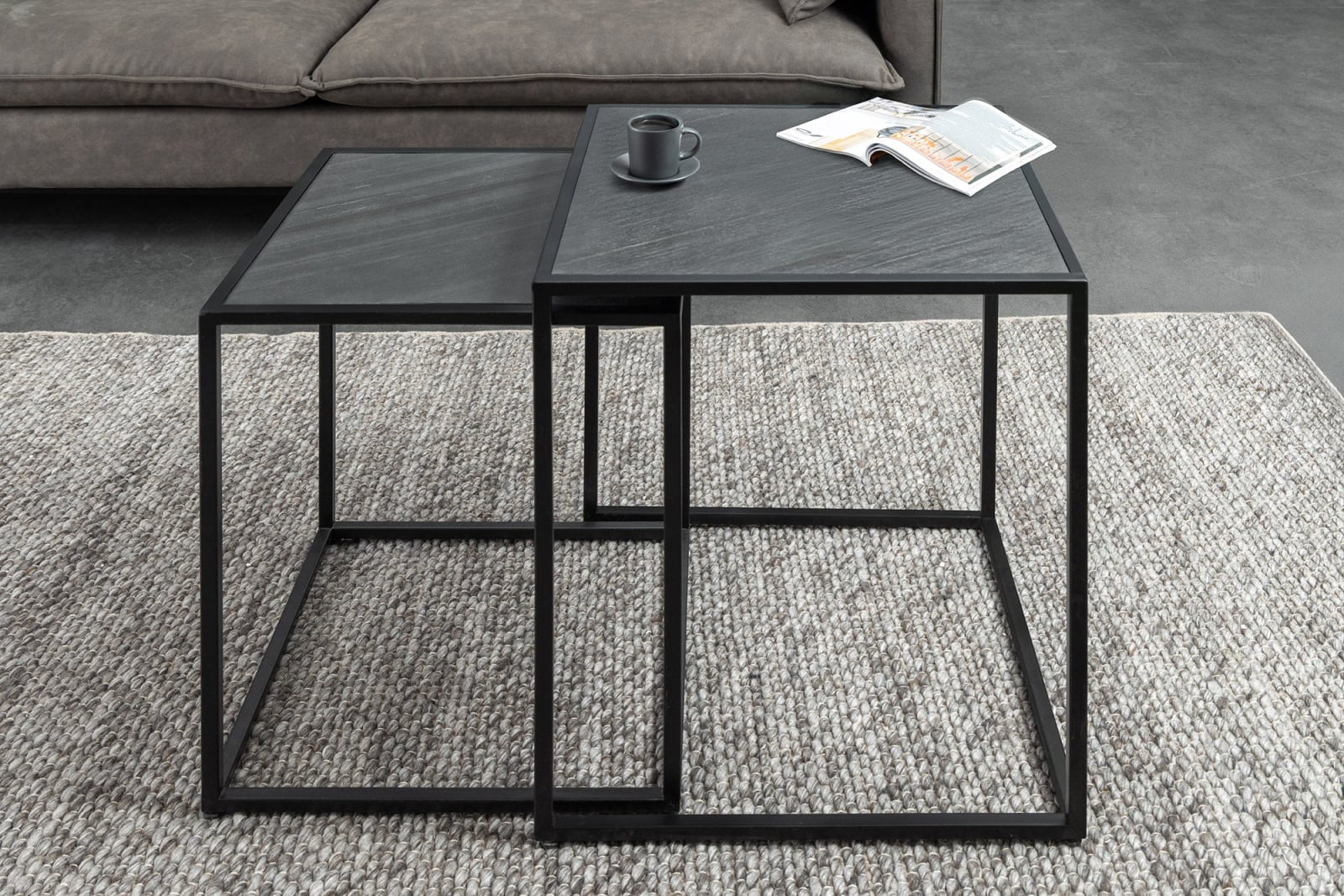 Set 2 masute de cafea MOUNTAIN SOUL cu aspect de marmura, 45/40 cm