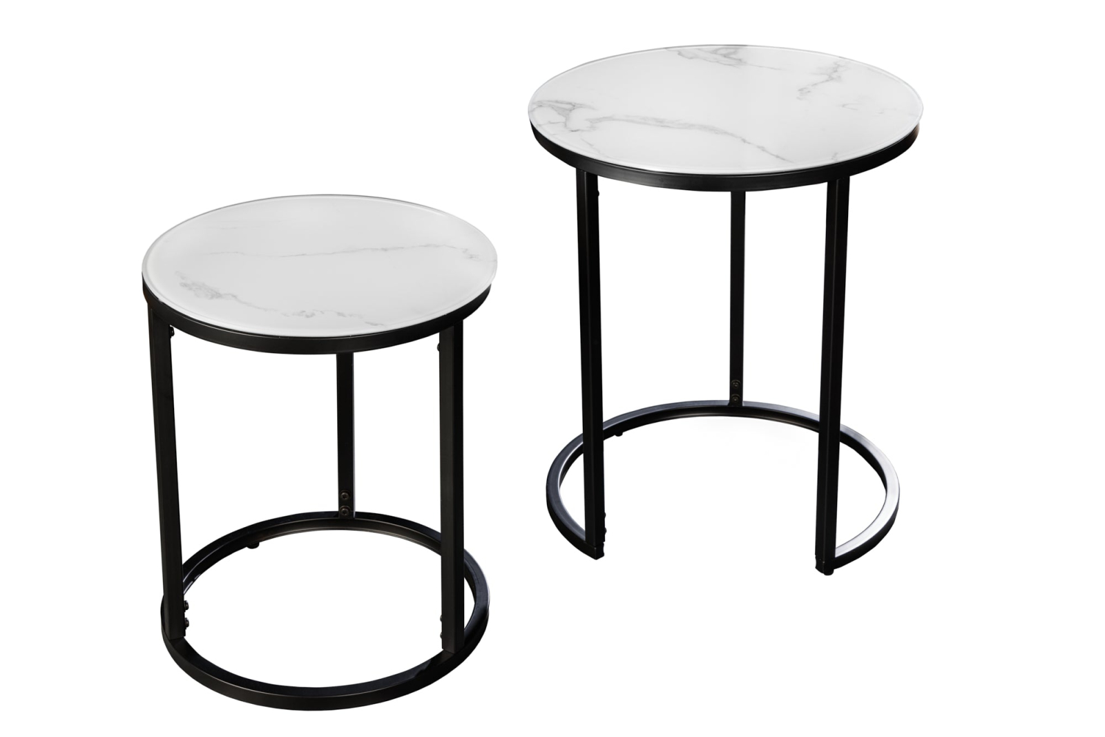 Set de 2 măsuțe laterale ELEGANCE Ø 50-60cm rotunde, aspect marmură alba , cadru negru