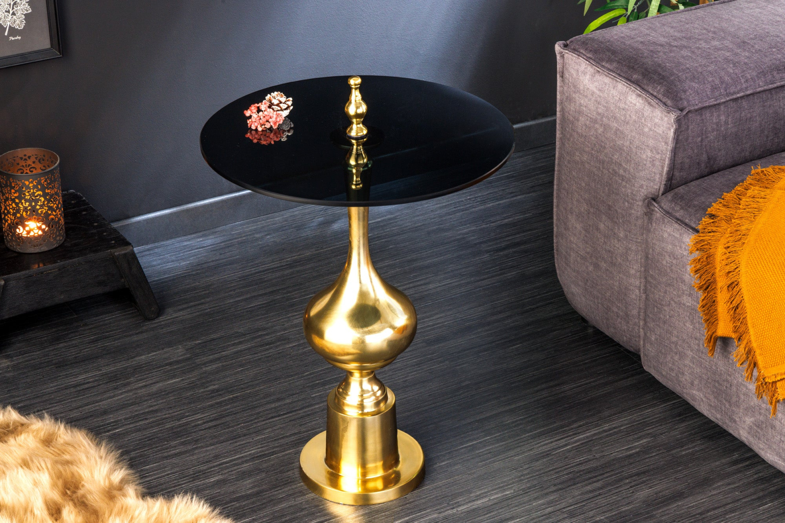 Masă laterală ABSTRACT 65cm aurie cu blat de sticlă