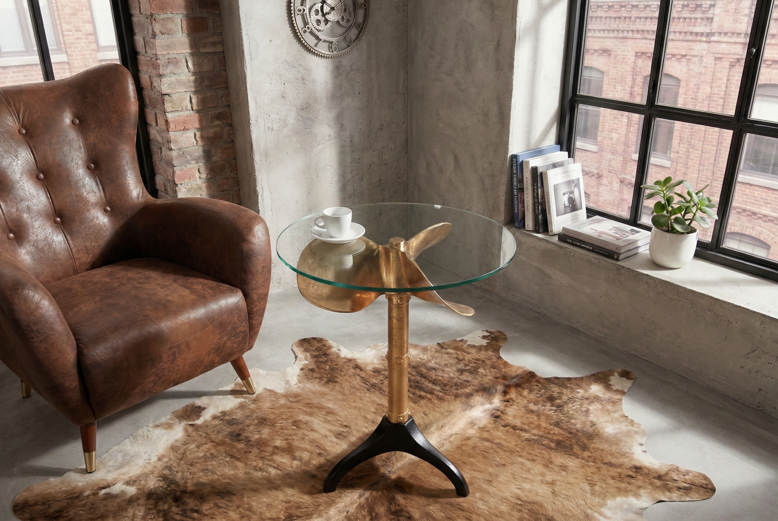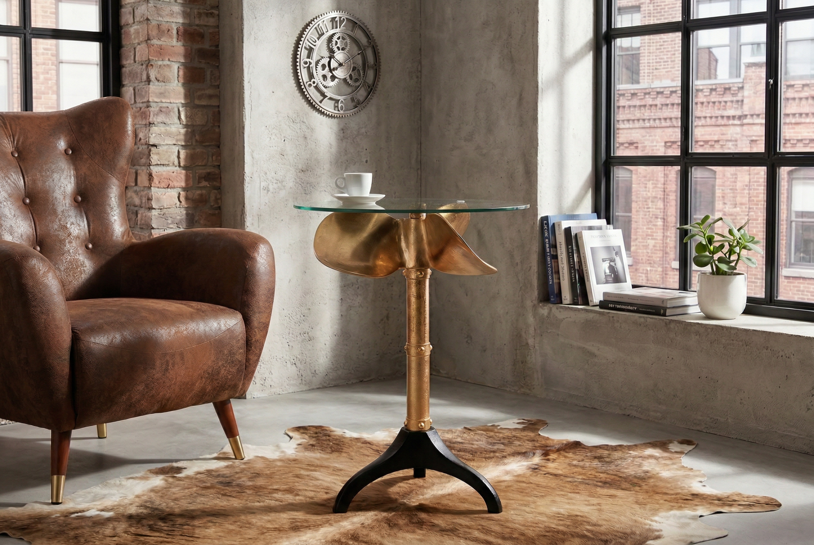 Masă laterală OCEAN 75cm aurie fără blat de sticlă