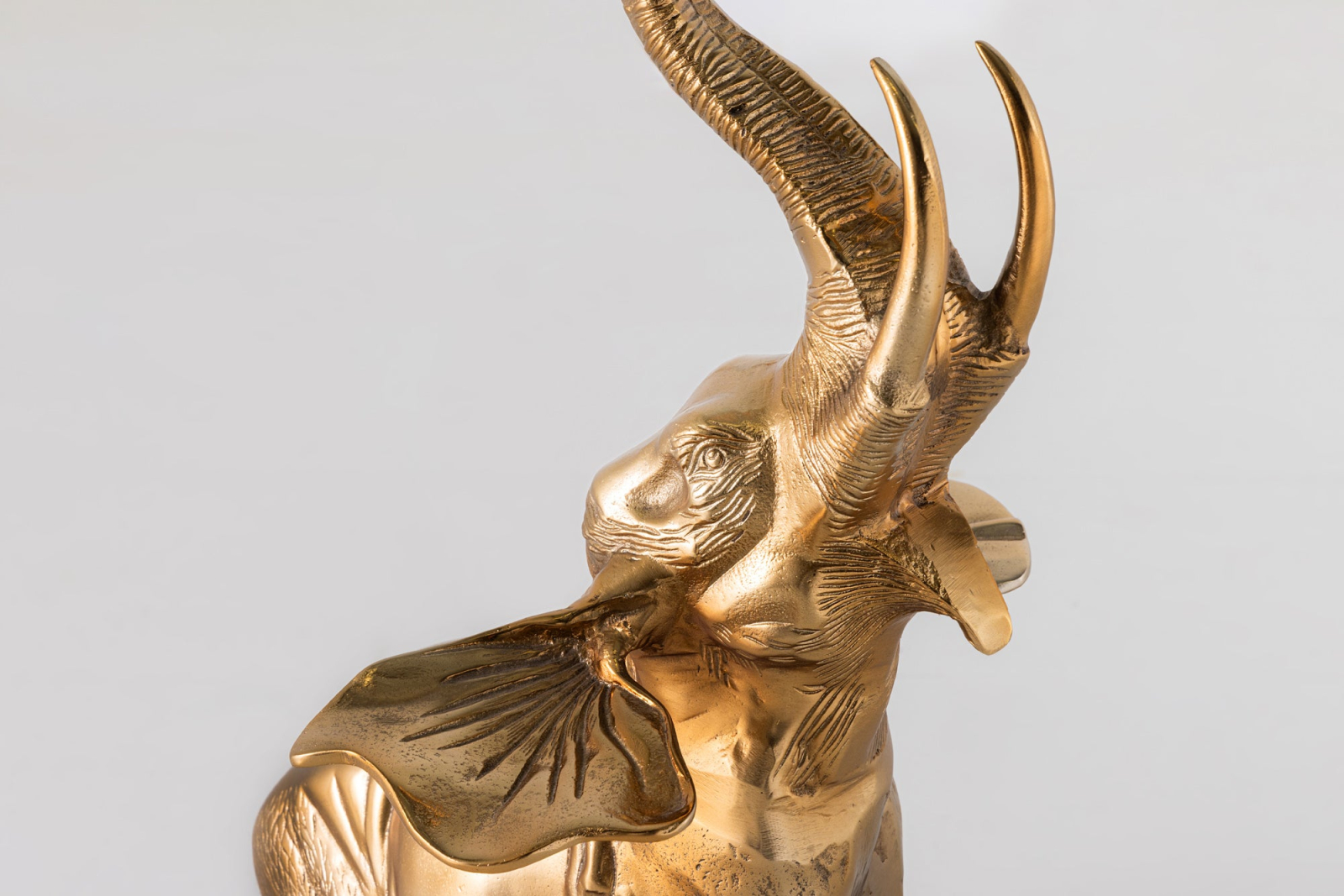 Masă laterală ELEPHANT 80cm aurie cu bază din marmură
