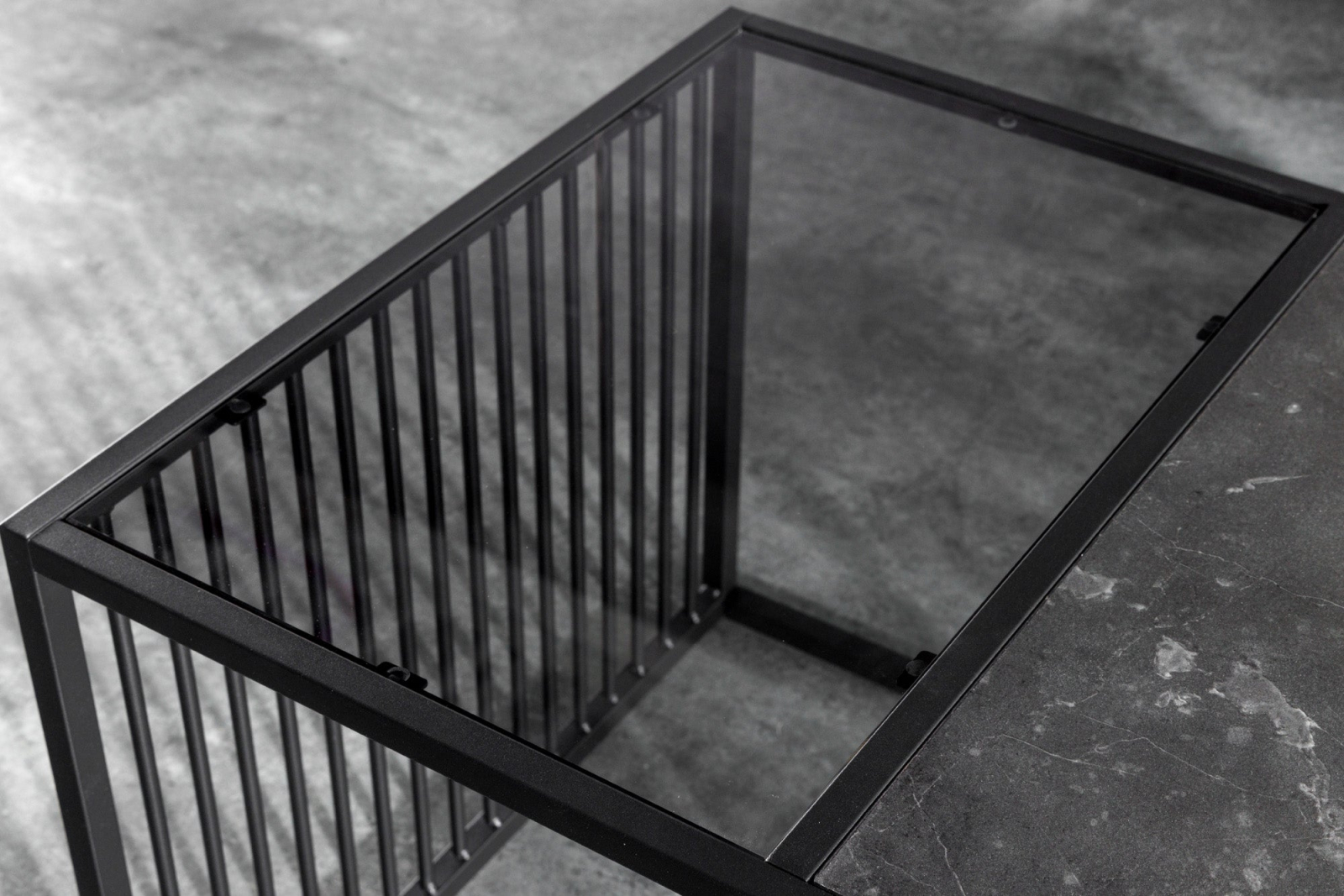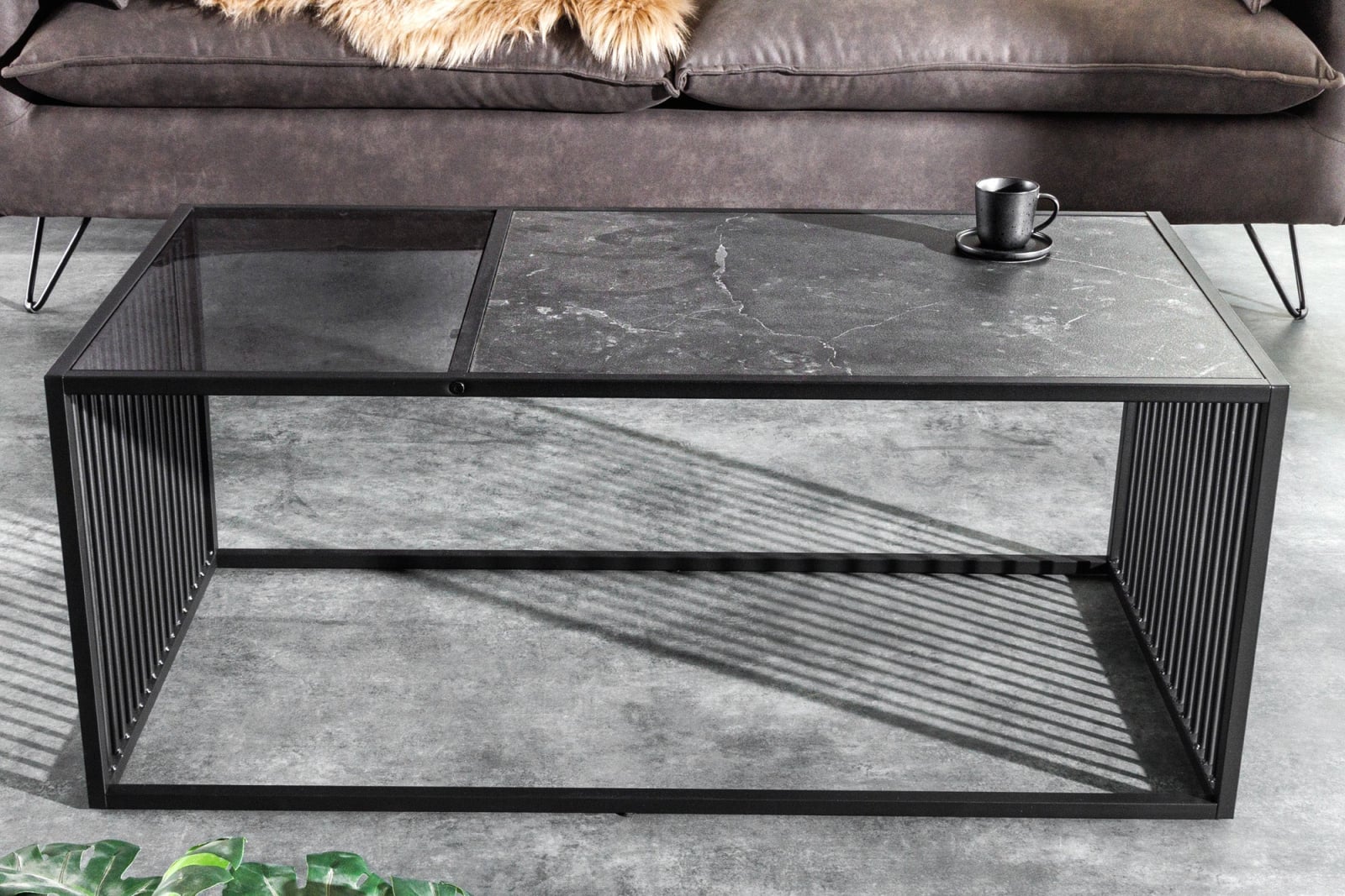 Masuta de cafea ARCHITECTURE cu aspect de marmura si geam fumuriu, 100 cm