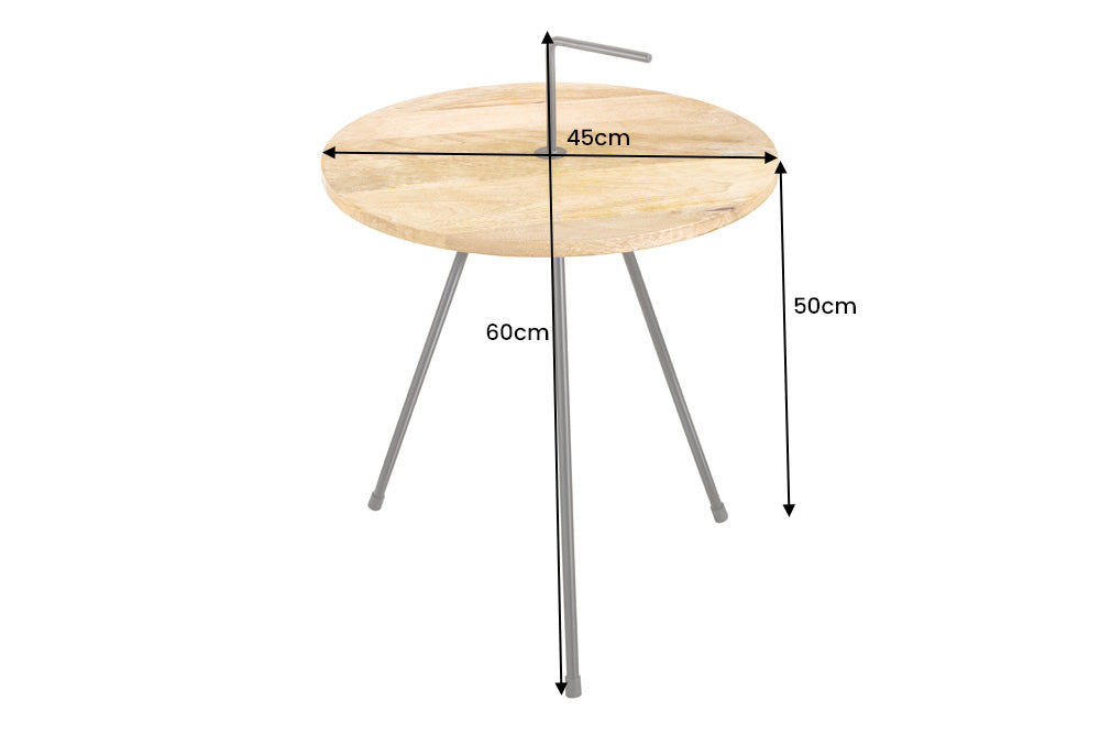 Masă laterală SIMPLY CLEVER 60cm din lemn natural de mango cu mâner negru