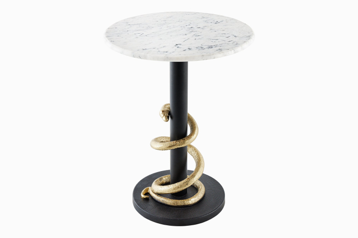 Masă laterală WILDLIFE SNAKE 50cm,cadru negru-auriu cu blat de marmura alba