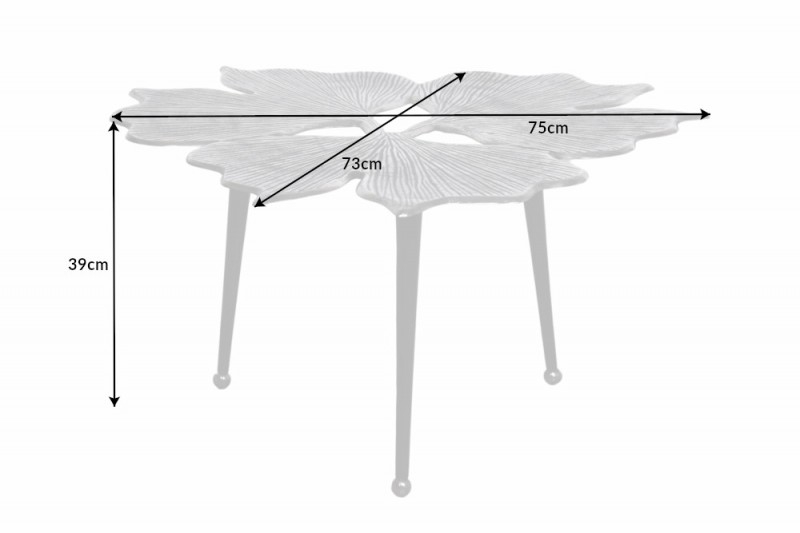 Masuta de cafea GINKGO LEAFS 75 cm din metal argintiu lucrat manual