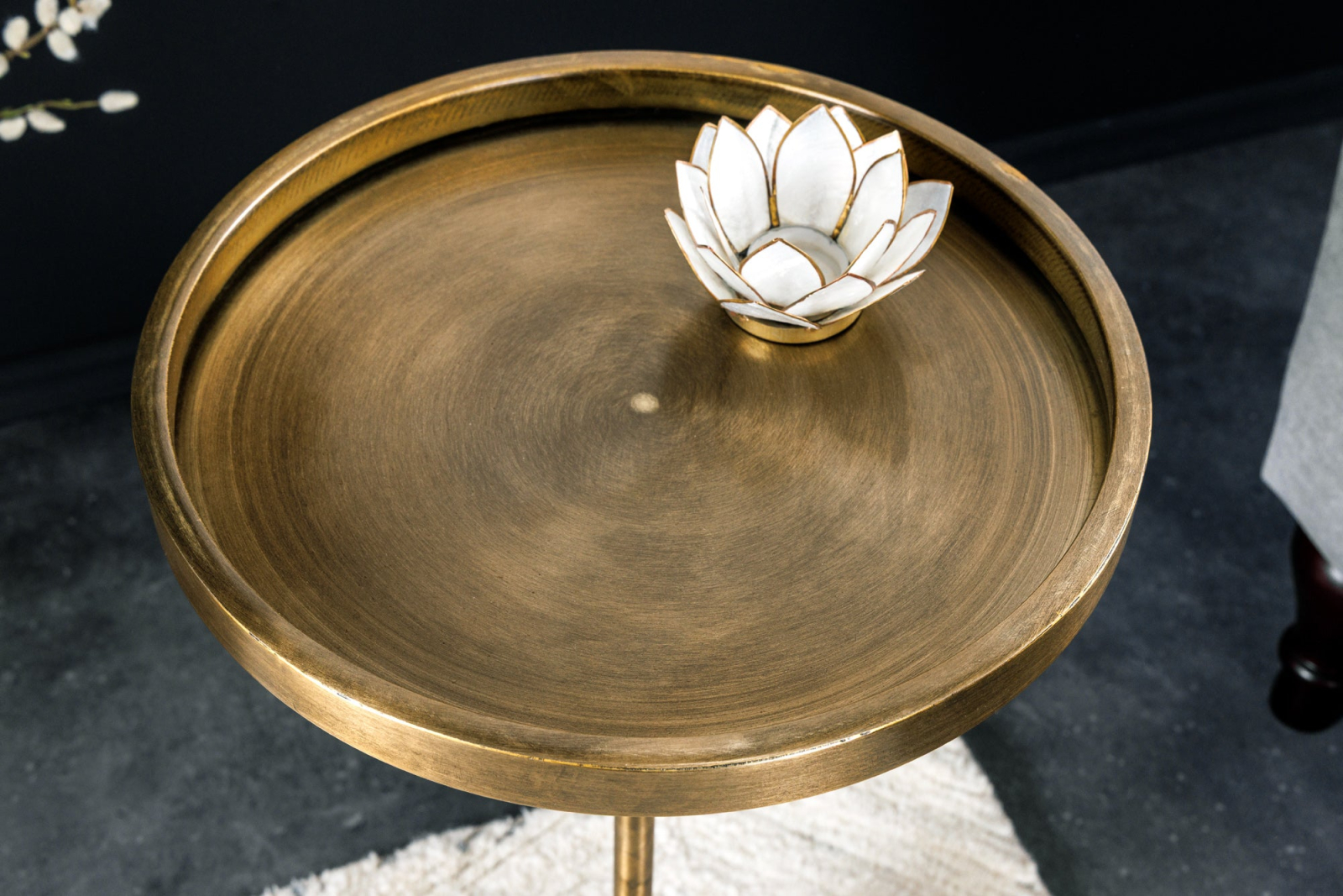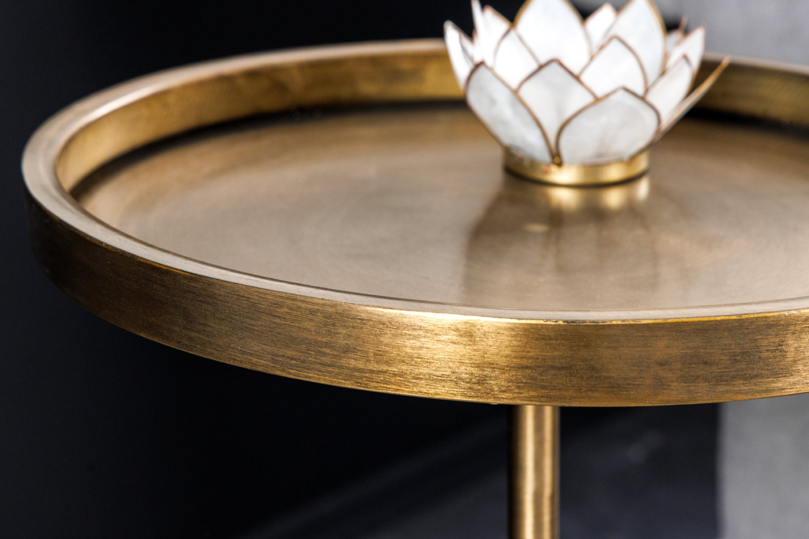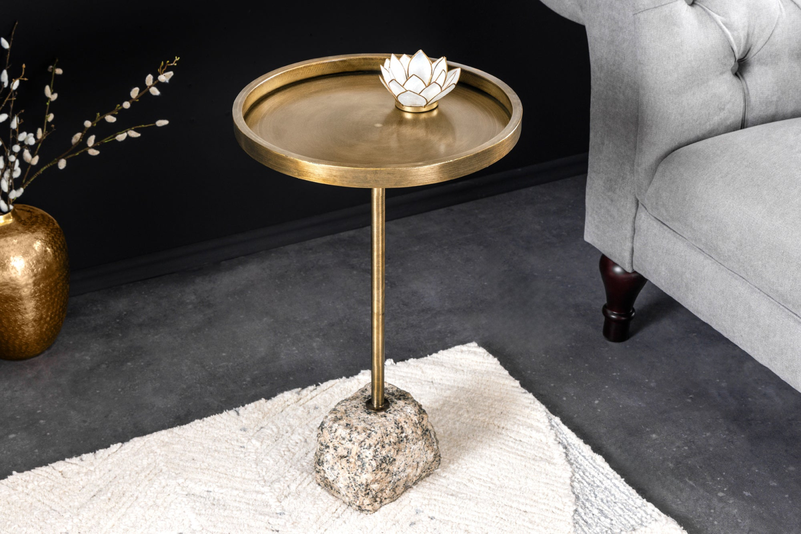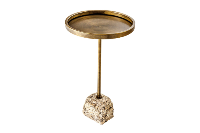 Masuta laterala TRAYFUL 60cm,baza de marmura si blat culoare alama antica din fier