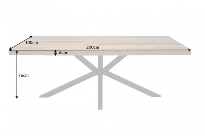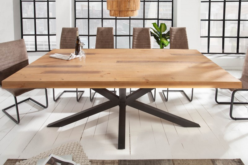 Masă dining Galaxie cu blat din lemn masiv de pin, 200 cm