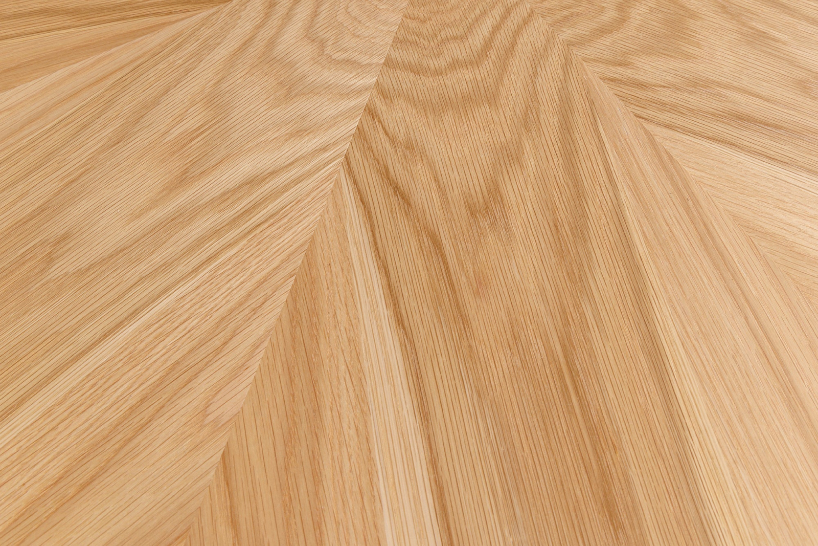 Masa de dining ATELIER este mai mult decât un simplu loc de luat masa – este o expresie a stilului, căldurii și eleganței moderne. Blatul de stejar de înaltă calitate se mândrește cu un model excepțional de fibre în formă de stea, care captează ușor lumina și conferă mesei o textură vibrantă. Fiecare privire dezvăluie detalii noi – un adevărat punct de atracție al designului care combină perfect naturalețea și măiestria. Nuanța caldă a stejarului natural aduce un sentiment de confort spațiului dvs. de locuit, în timp ce baza rotundă din metal negru conferă mesei stabilitate și o notă modernă.