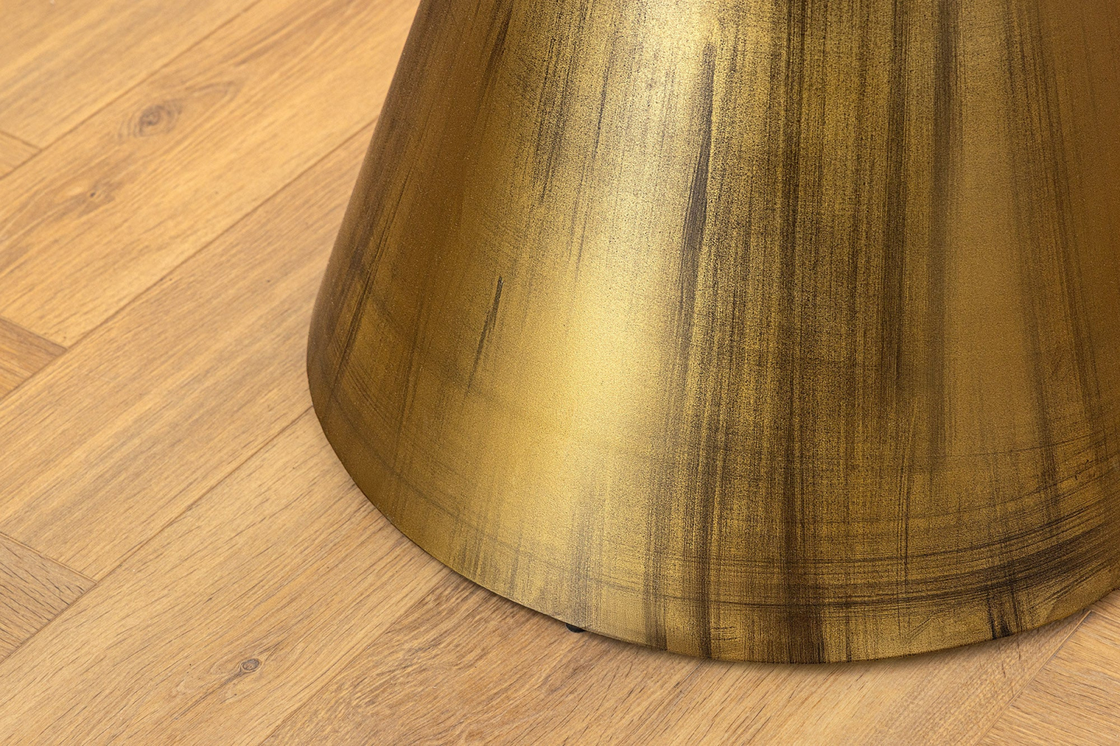 Baza piedestalului din fier auriu oferă stabilitate și un accent elegant.