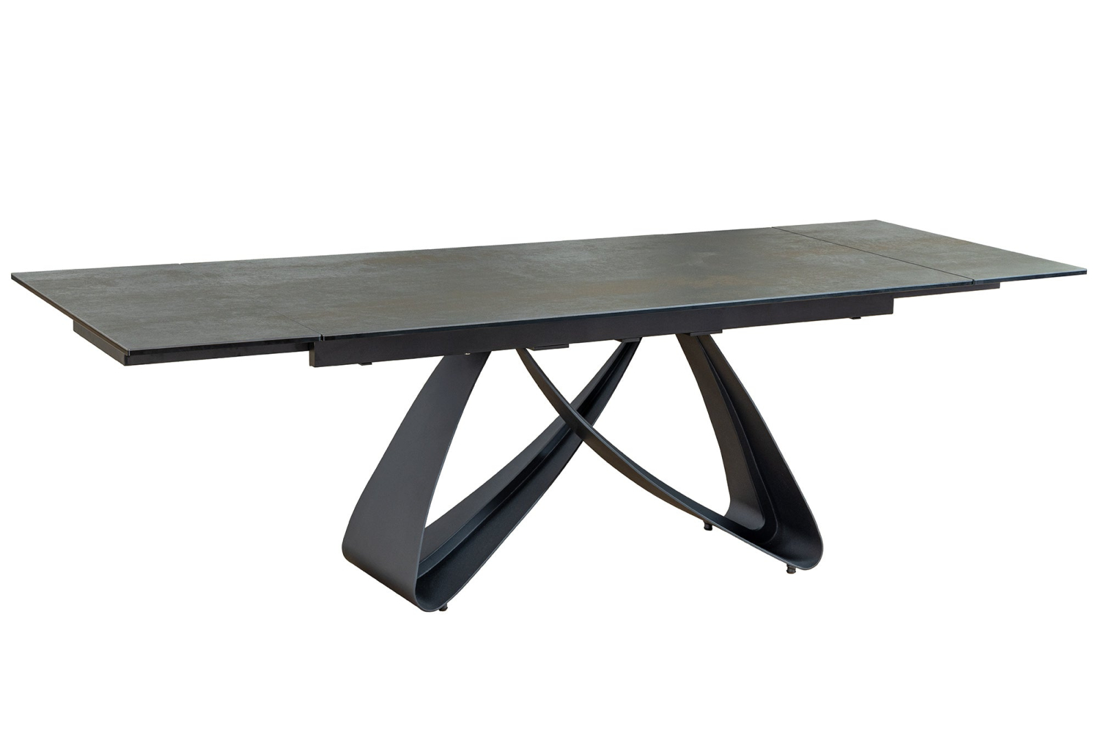 Descoperiți masa exclusivă INFINITY – noua și eleganta masă de design, cu blat extensibil din ceramică de înaltă calitate, cu finisaj ruginit. Această masă elegantă cu efect de marmură se extinde fără efort de la 180 cm la impresionantul 260 cm, putând găzdui confortabil până la 10 persoane. Perfectă pentru sufrageria modernă sau pentru zonele de living spațioase. Blatul combină aspectul luxos al marmurei cu proprietățile robuste ale ceramicii. Datorită suprafeței sale rezistente la zgârieturi, căldură și pete, masa dumneavoastră rămâne impecabilă chiar și în cazul utilizării zilnice. Venaturile subtile gri conferă camerei dumneavoastră un aspect sofisticat și contemporan.