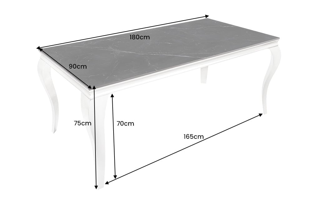 Experimentați luxul și eleganța în sufrageria dvs. cu masa de sufragerie MODERN BAROQUE din lemn masiv. Această masă mare oferă spațiu amplu pentru întâlniri sociale și cine festive. Designul elegant în negru și crom combină elemente baroce clasice cu accente moderne, făcând din această masă un punct de atracție distinctiv în casa dvs. Blatul ceramic impresionează prin aspectul său excepțional și este cunoscut pentru rezistența sa ridicată la zgârieturi, pete și căldură, fiind nu numai frumos, ci și extrem de practic și ușor de întreținut. Nuanța elegantă de negru a blatului îi conferă o estetică atemporală și completează o gamă largă de stiluri de design interior.