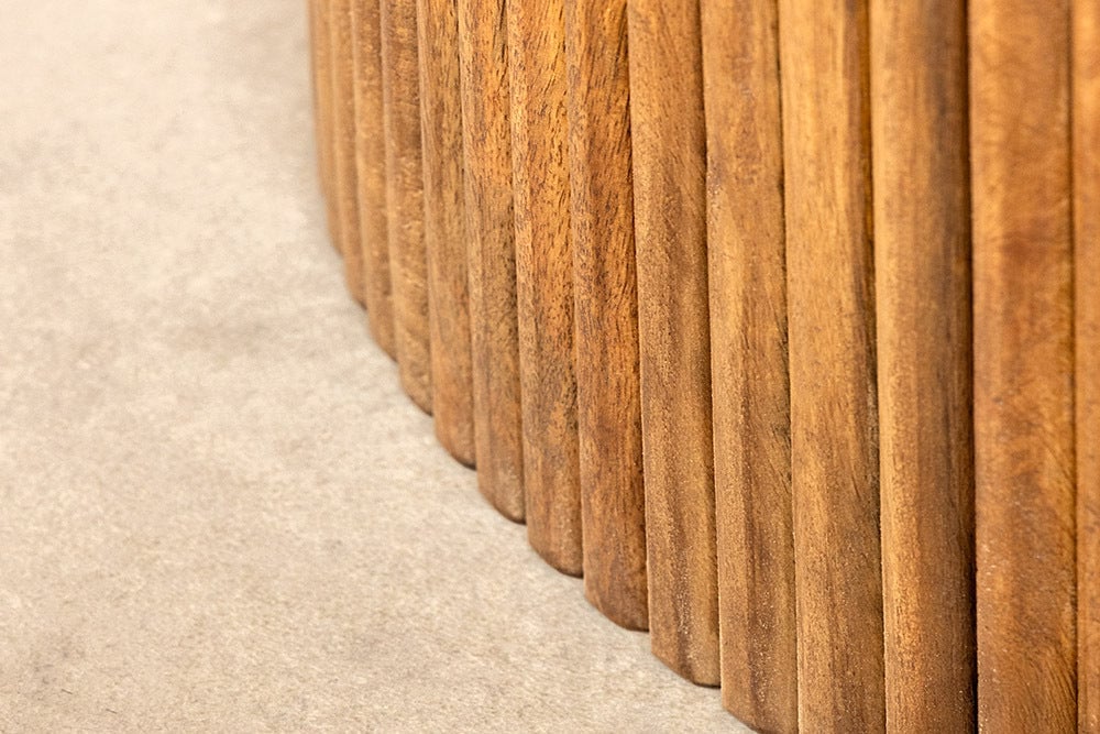 Cadrul solid cu lamele decorative din lemn de mango creează un aspect elegant.