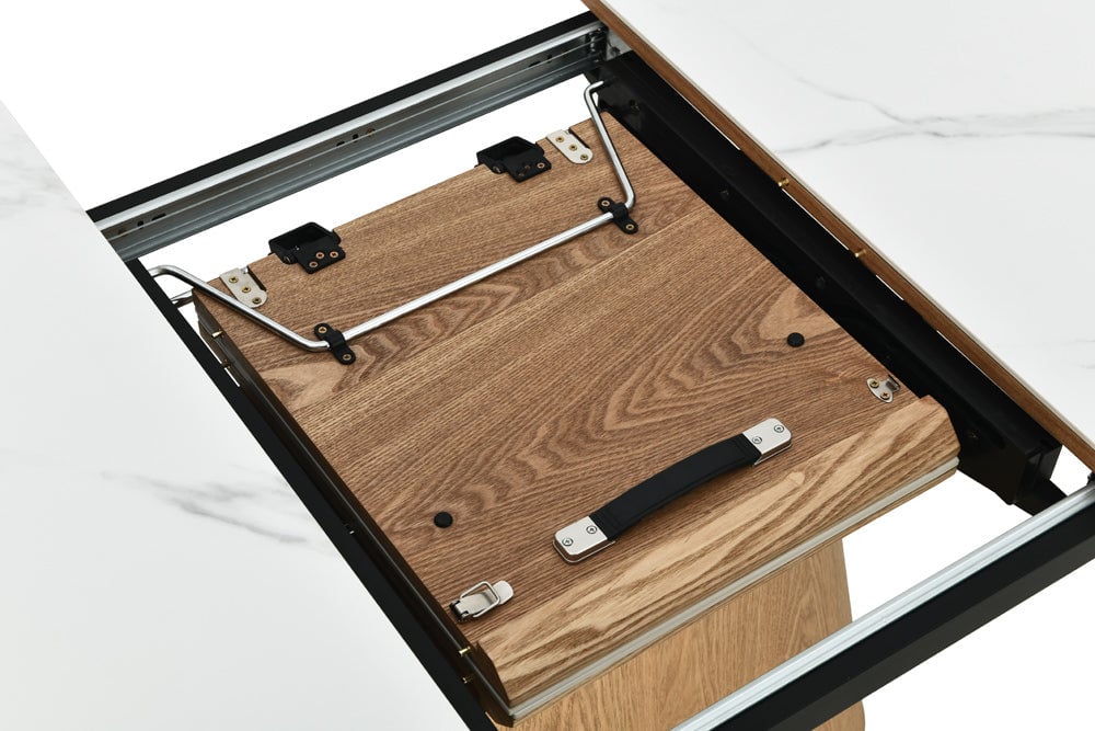 Stilul întâlnește funcționalitatea – noua ta masă de sufragerie UNIQUE cu aspect de stejar și marmură
