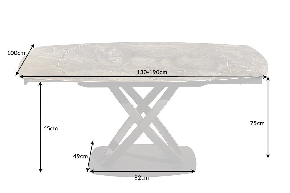 lungime 130-190 cm/inălțime 75 cm/lățime 100 cm