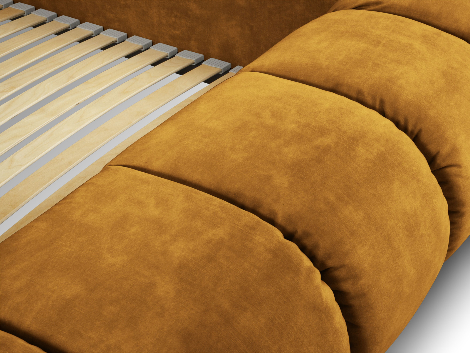 Structură din lemn masiv, PAL, MDF, spumă poliuretanică, cadru metalic cu lamele elastice