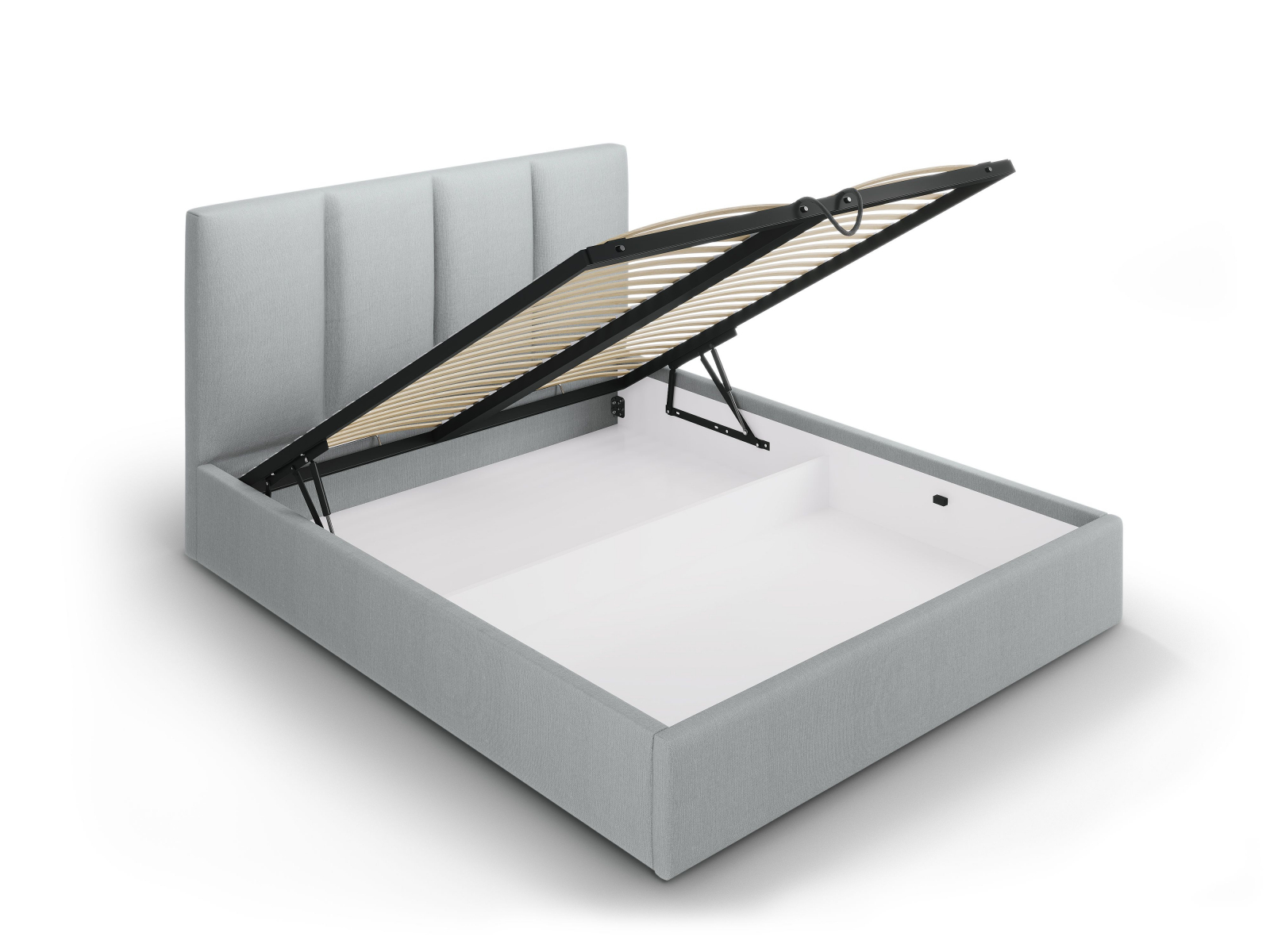 Patul Pyla este prevăzut cu un spațiu de depozitare și picioare din lemn. Cu stil dar practic, acest pat va aduce eleganță și confort în dormitorul oricui.