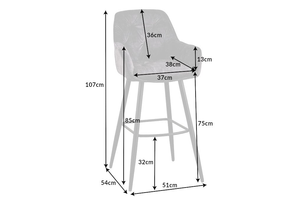 Set 2 scaune de bar MILANO din catifea gri, 75 cm