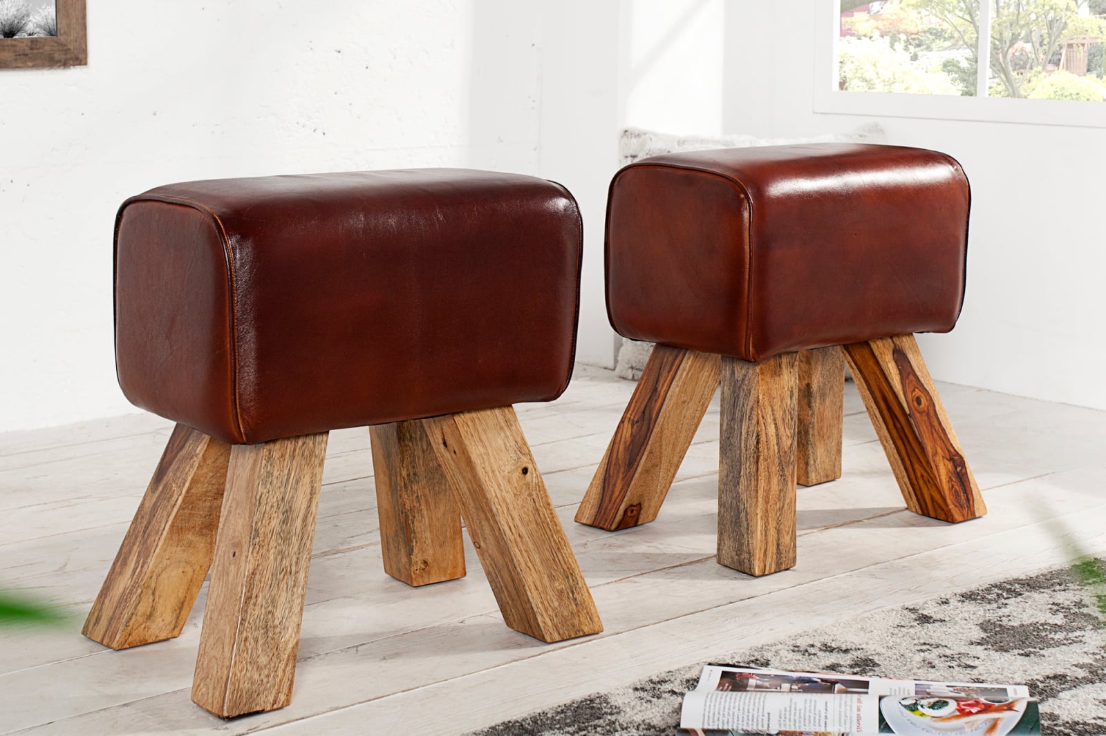 Set 2 scaune BOCK din lemn de mango si sezut din piele, 40 cm