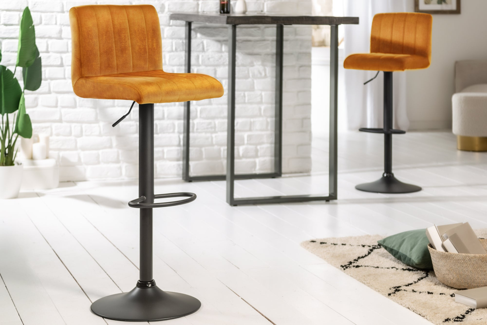 Set 2 scaune de bar PORTLAND din catifea galben mustar, 88-109 cm