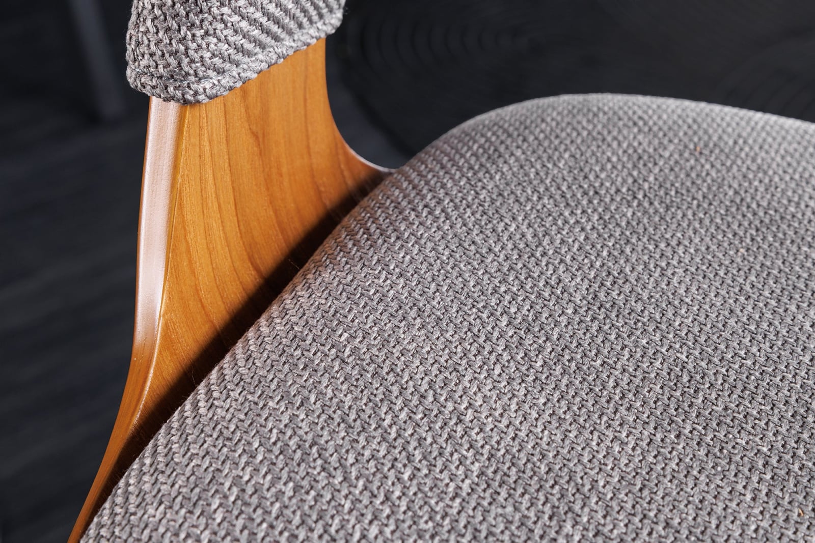Scaun de bar rotativ MANHATTAN din material texturat gri si lemn de frasin, 64-85 cm