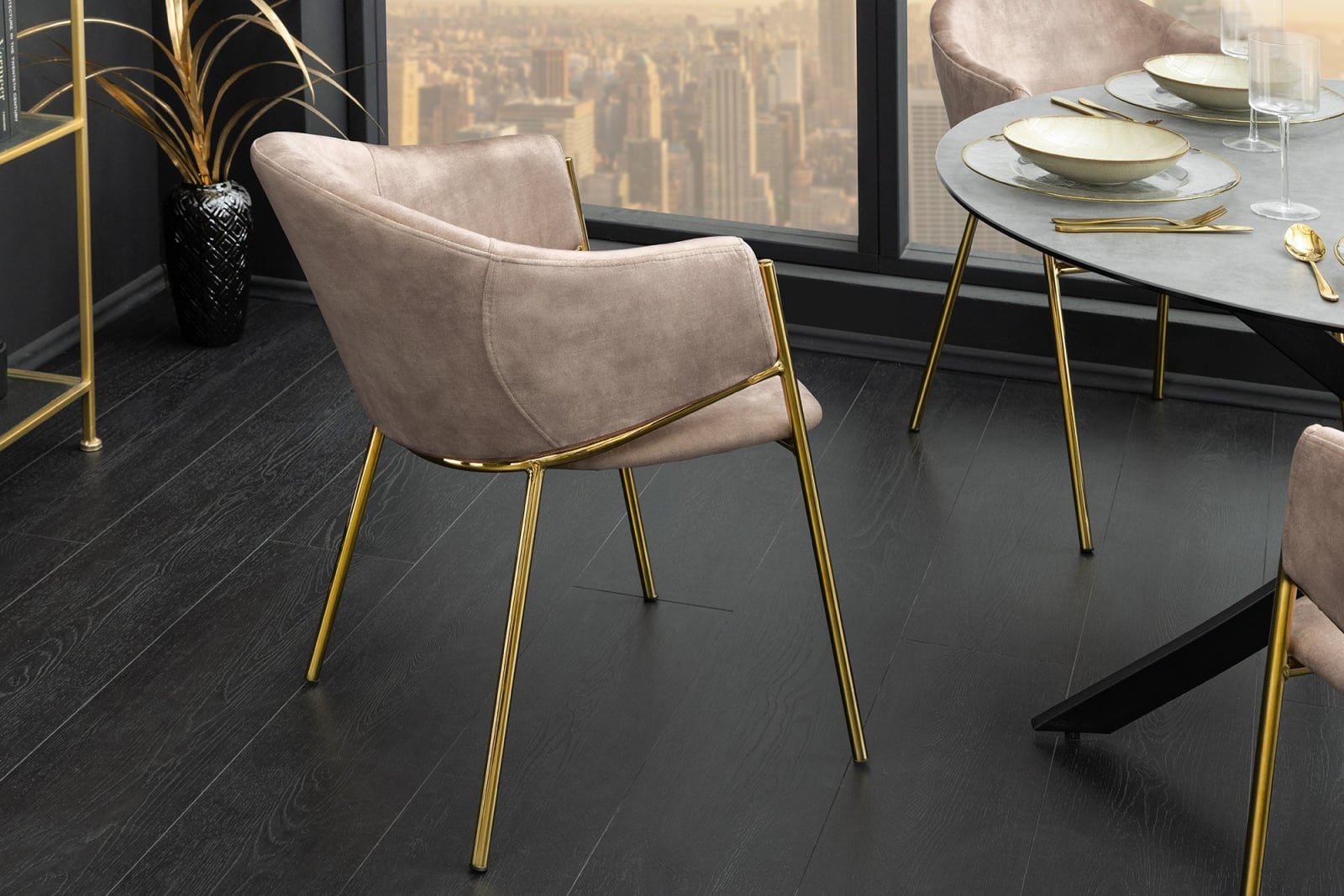 Set 2 scaune NOBLESSE din catifea sampanie