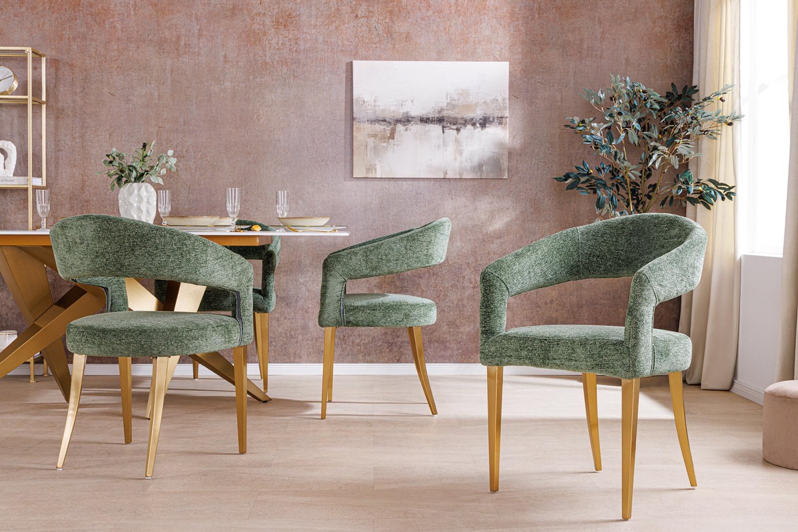 Set 2 scaune BOUTIQUE din material texturat verde