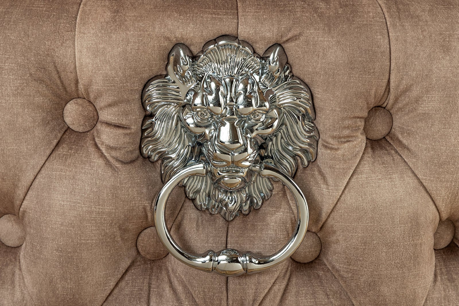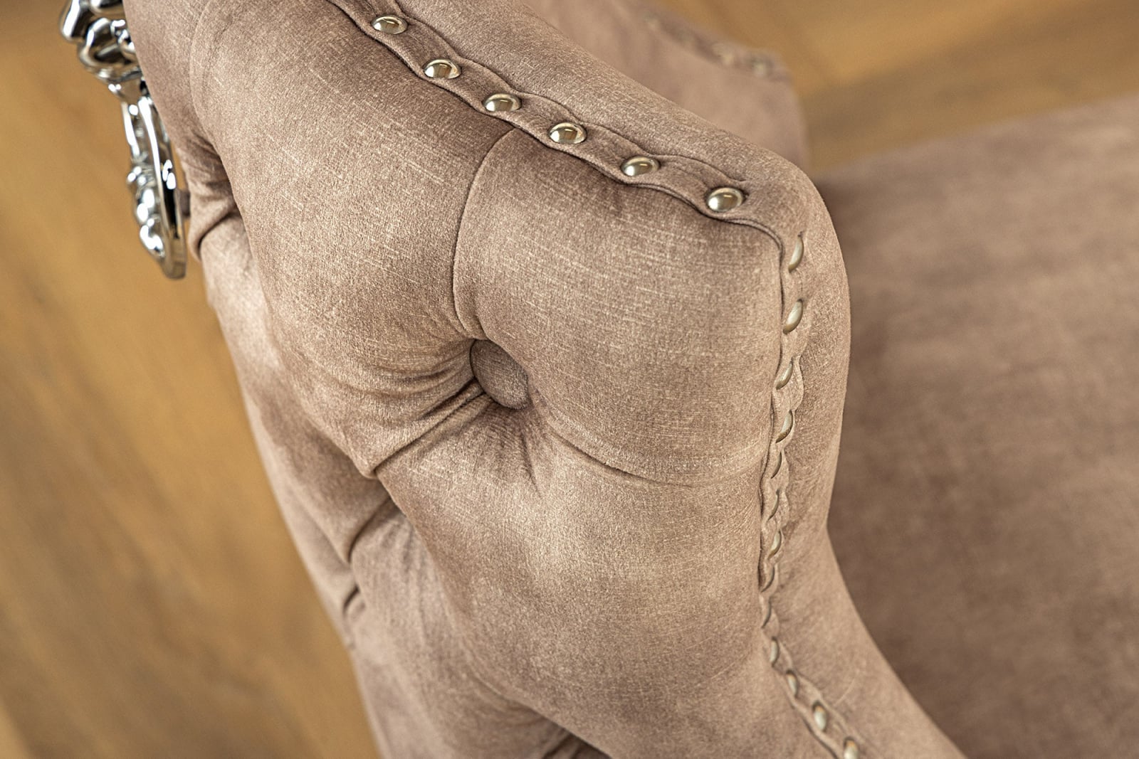 Set 2 scaune CASTLE DELUXE din catifea bej cu detaliu in forma de cap de leu