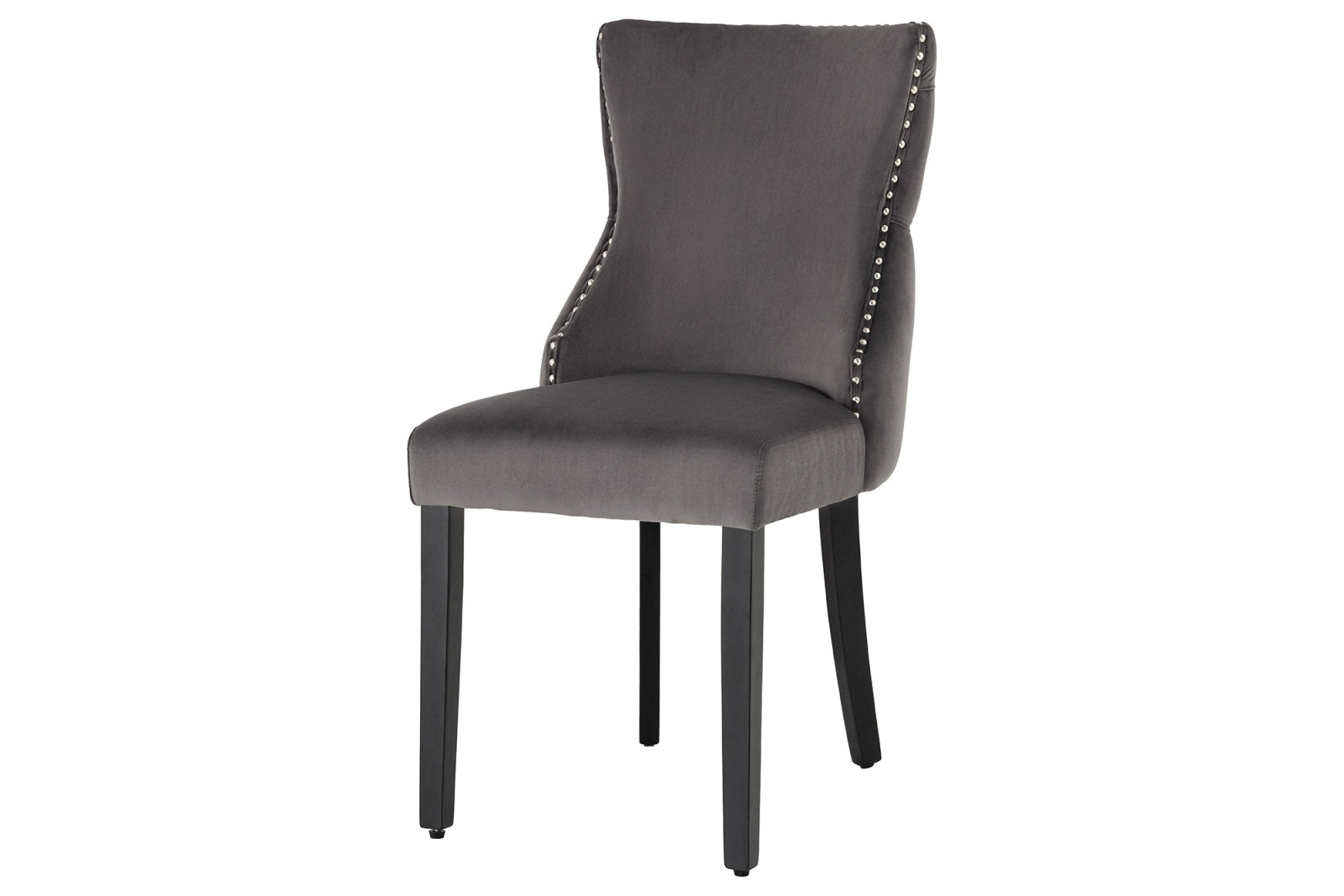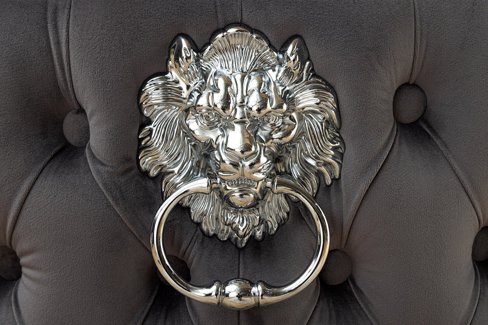 Set 2 scaune CASTLE DELUXE din catifea gri cu detaliu in forma de cap de leu