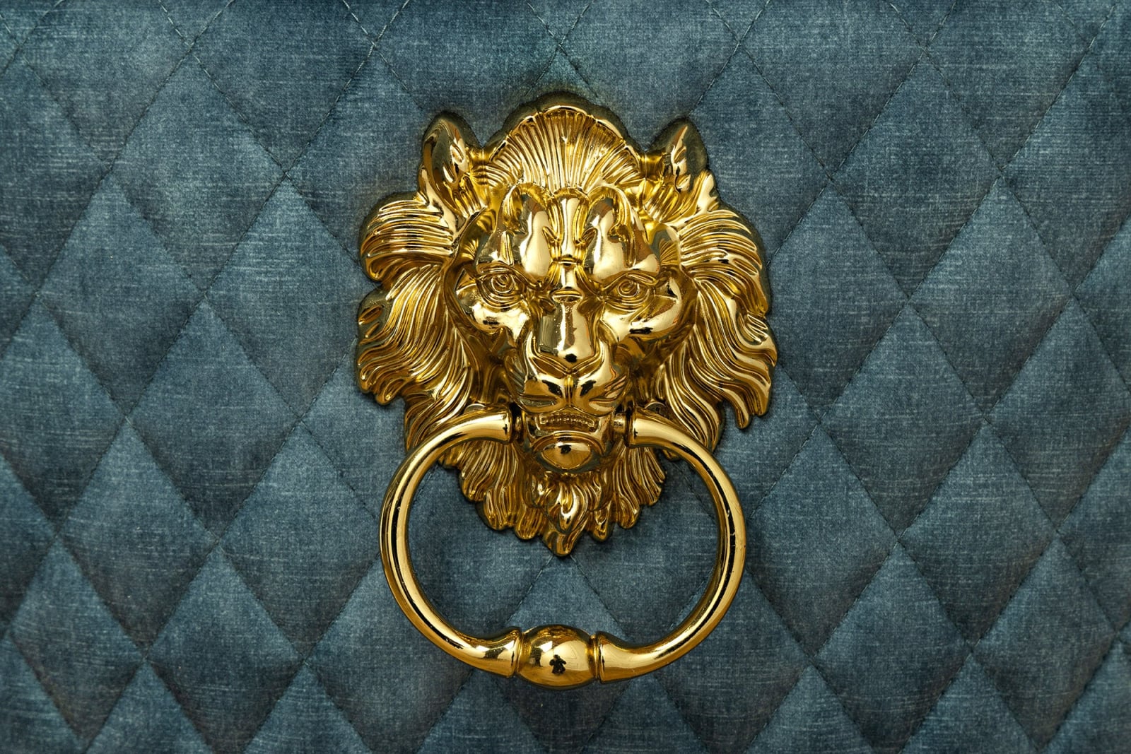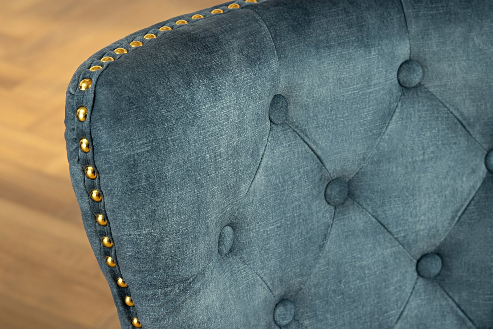 Set 2 scaune CASTLE din catifea petrol si accesoriu in forma de cap de leu