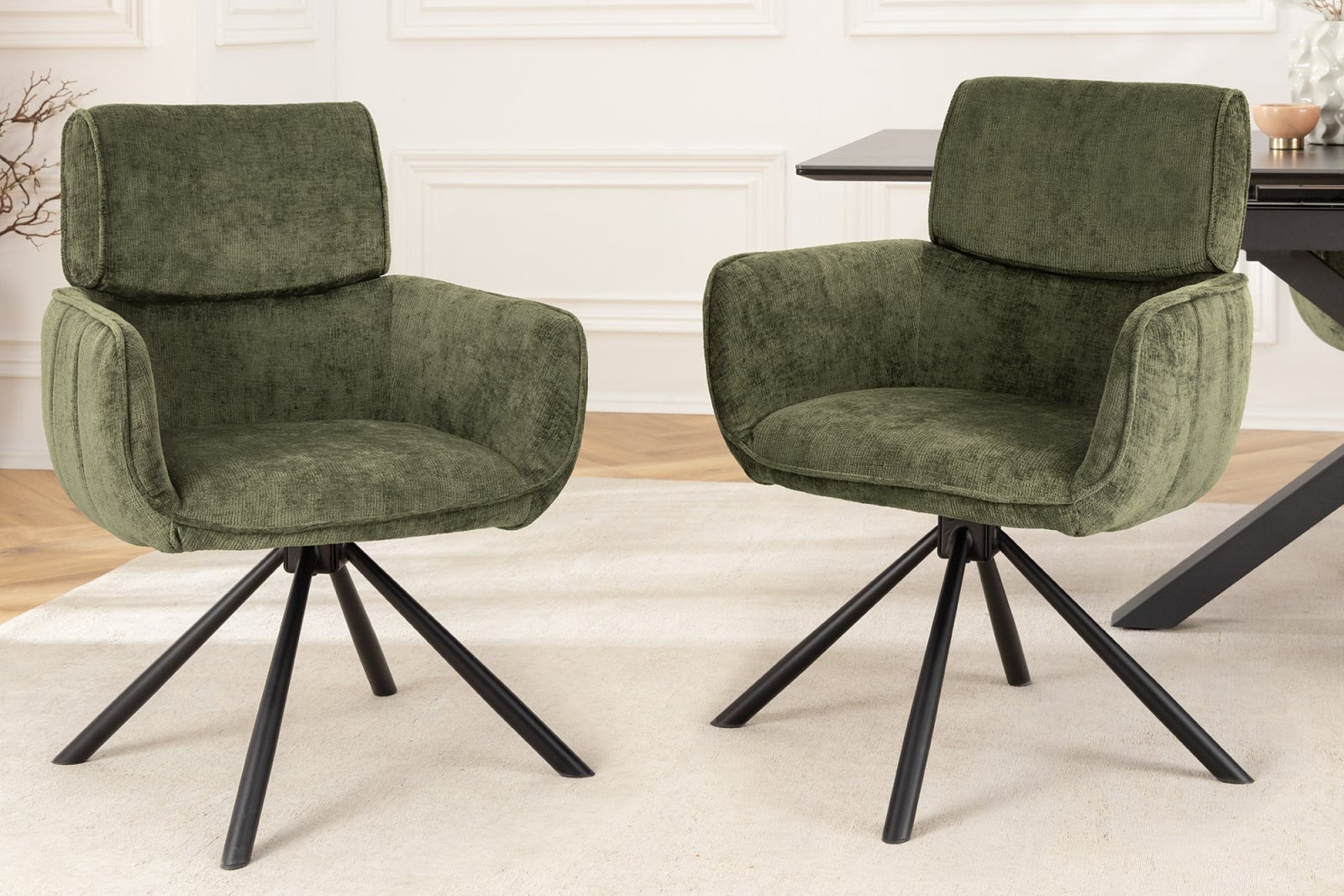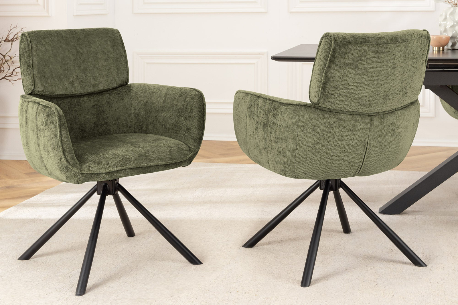 Set 2 scaune rotative UNIQUE 180° din chenille verde