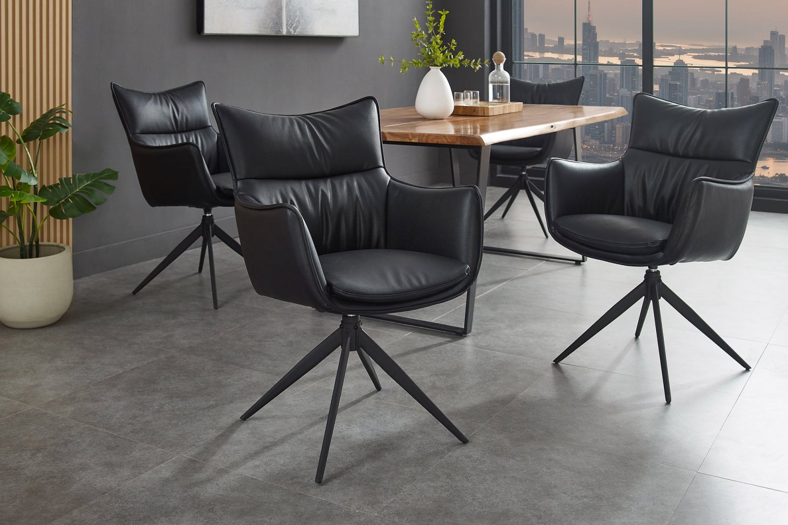 Set 2 scaune rotative VOGUE 360° din piele artificiala neagra si metal