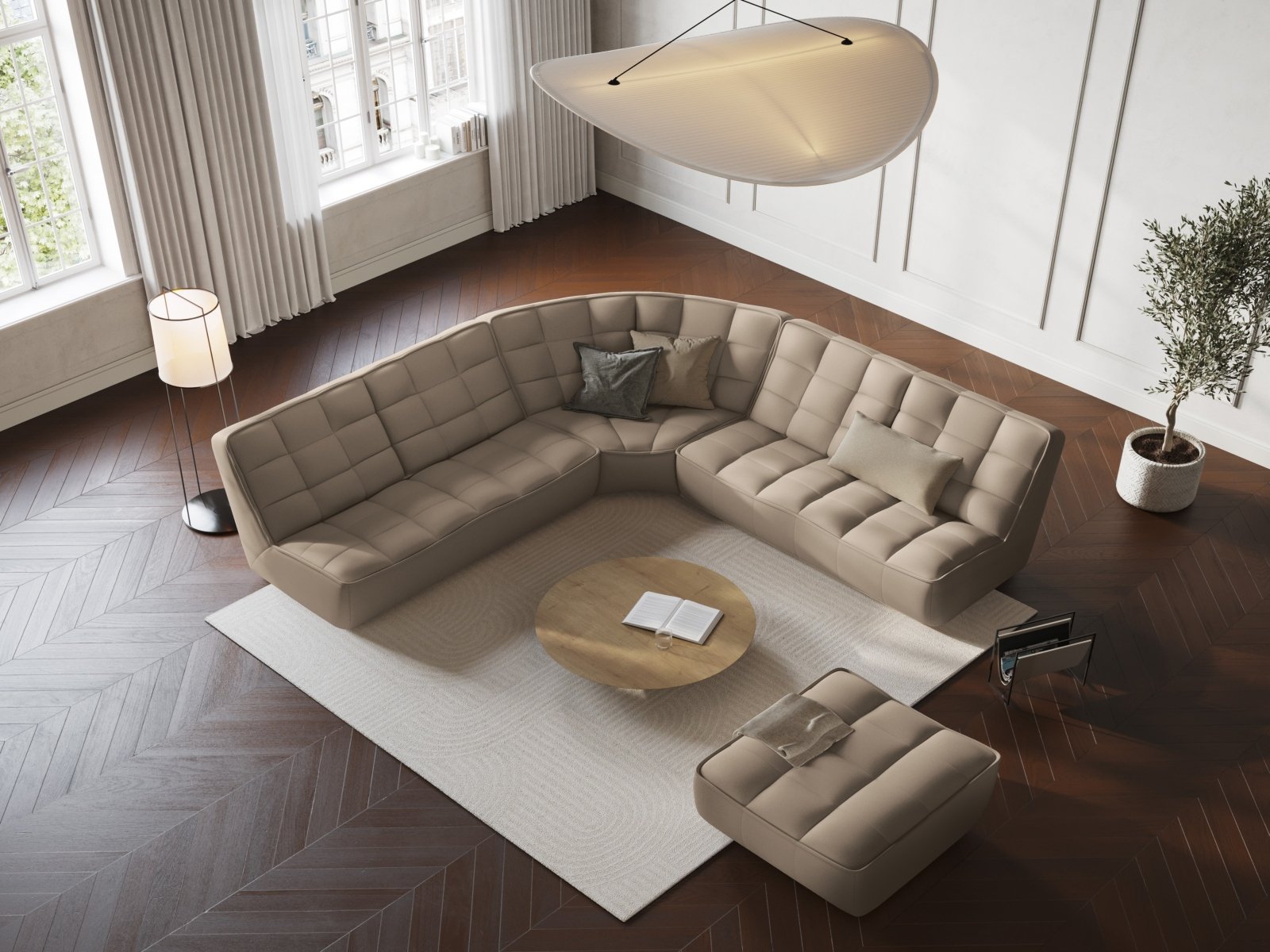 Piele naturala de vaca cu granulatie mata cu structura de coaja de portocala, 100% naturala. Stratul superior este ușor în relief, datorită căruia structura sa delicată este păstrată și caracteristicile naturale sunt vizibile la suprafață. Grosime aproximativ 1,5 mm. Datorita procesului delicat de finisare, este foarte placut la atingere, nu se crapa si nu se delamineaza. Fiecare strat de piele naturală poate diferi ca aspect și structură. Datorită acestui lucru, piesa de mobilier devine unică. Pielea ta de tapițerie se va adapta usor și la condițiile de mediu.